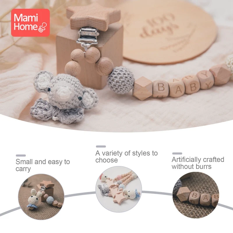 1 шт., детская пустышка, цепочка для соски, деревянные зажимы для сосков, связанная крючком погремушка, грызун, животное, держатель для соски, BPA бесплатно, детский Прорезыватель для зубов, подарки для медсестры