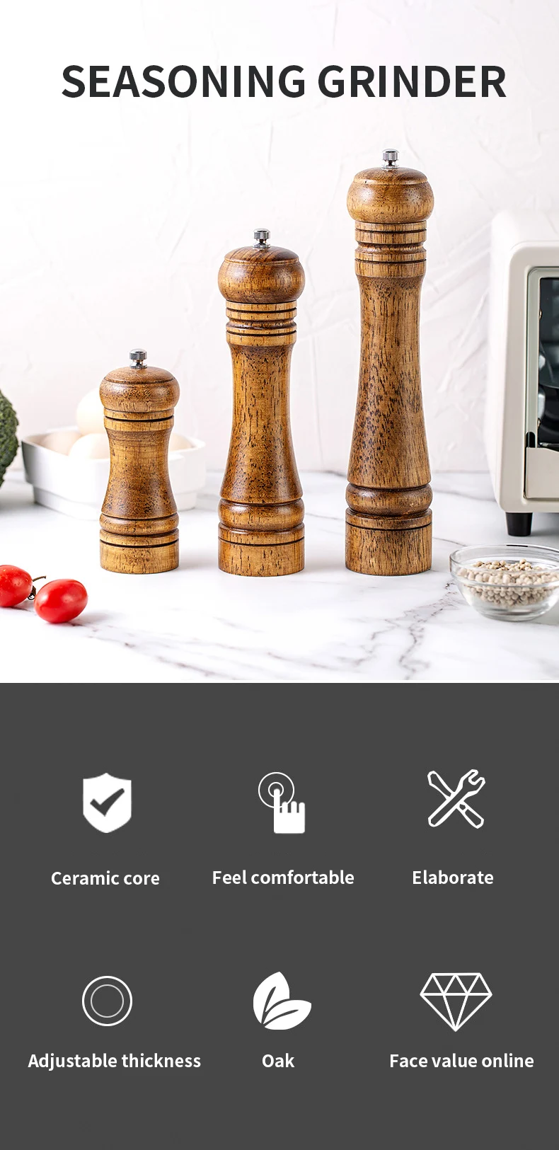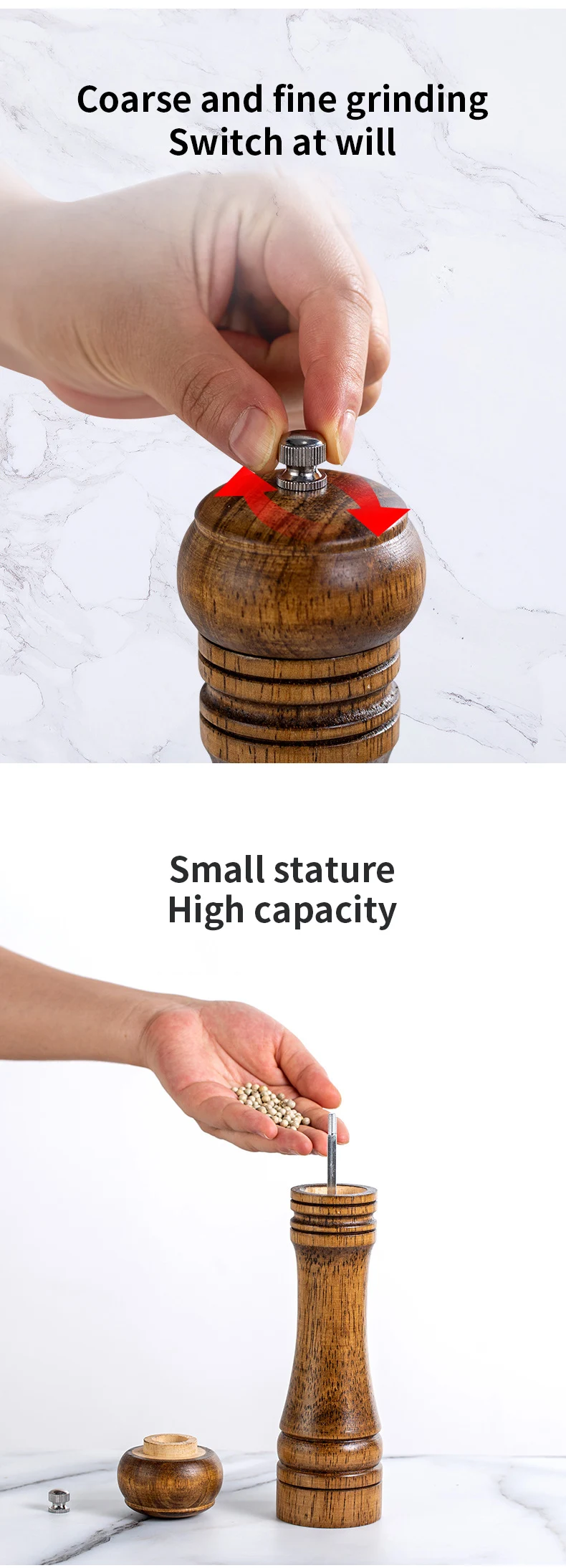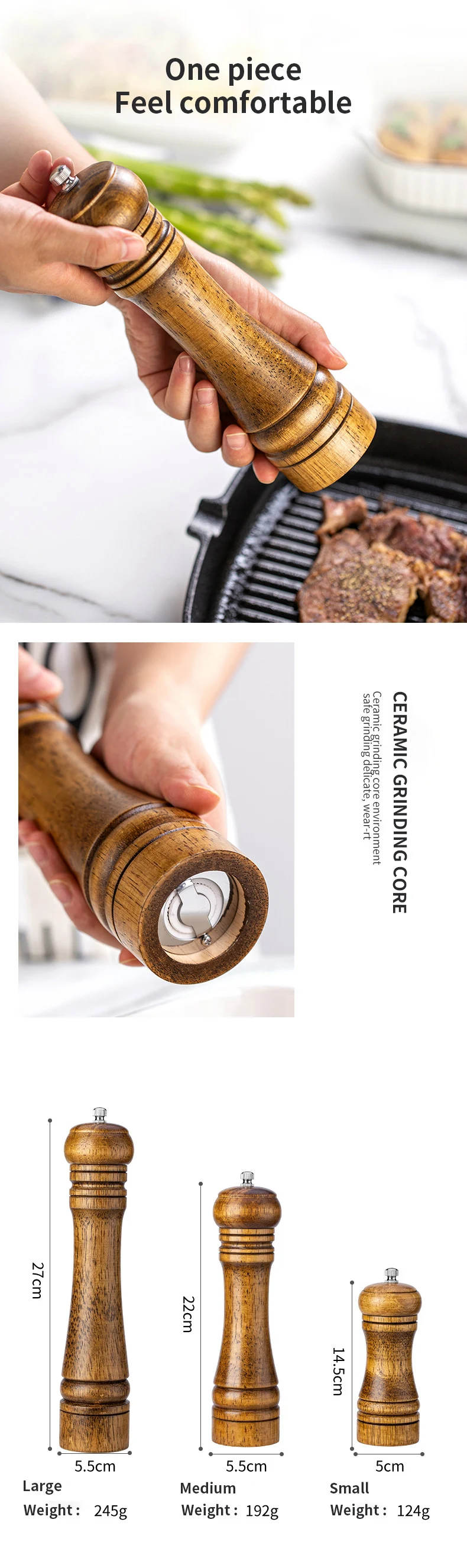 Мельница для соли и перца, измельчитель из цельного дерева с регулируемым керамическим сердечником, 5810 дюймов