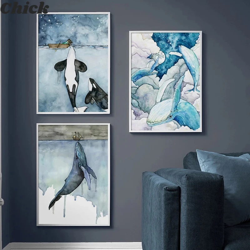 Современный постер с животными, Картина на холсте в скандинавском стиле, Кит, Акула, абстрактное искусство, крыльцо, спальня, Фреска, гостиная, домашний декор, картина