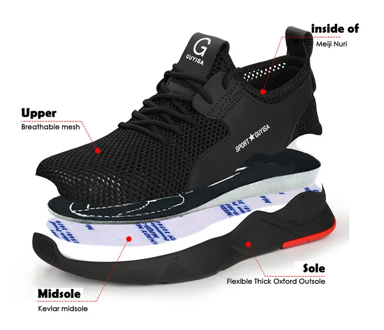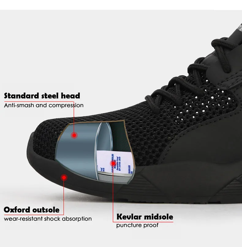 Ботинки Xiaomi легкие защитные мужские, дышащие защитные ботинки со стальным носком, защита от проколов, размеры 36-48