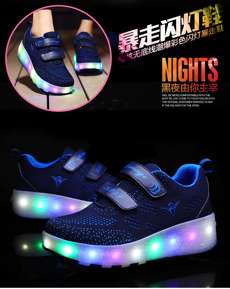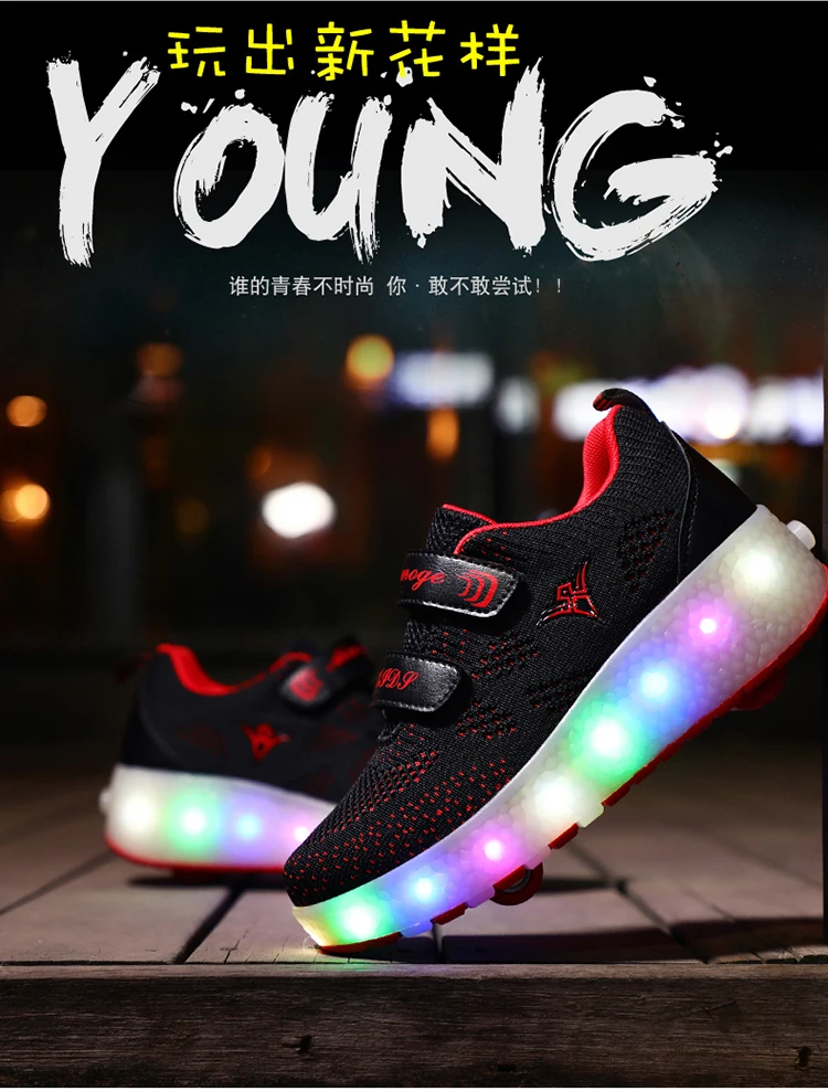 Светящиеся Детские кроссовки с двумя колесами, размеры 28-43