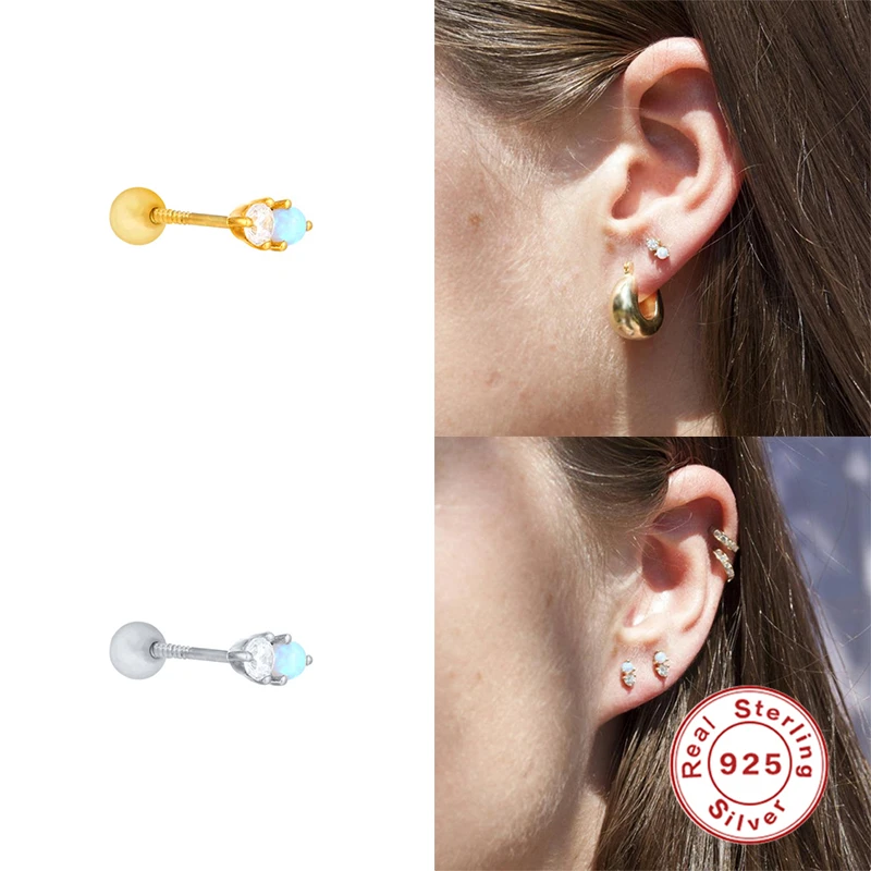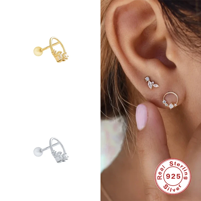 Simple Round Stud EarringsPiercing Zircon Crystals Stud Earrings