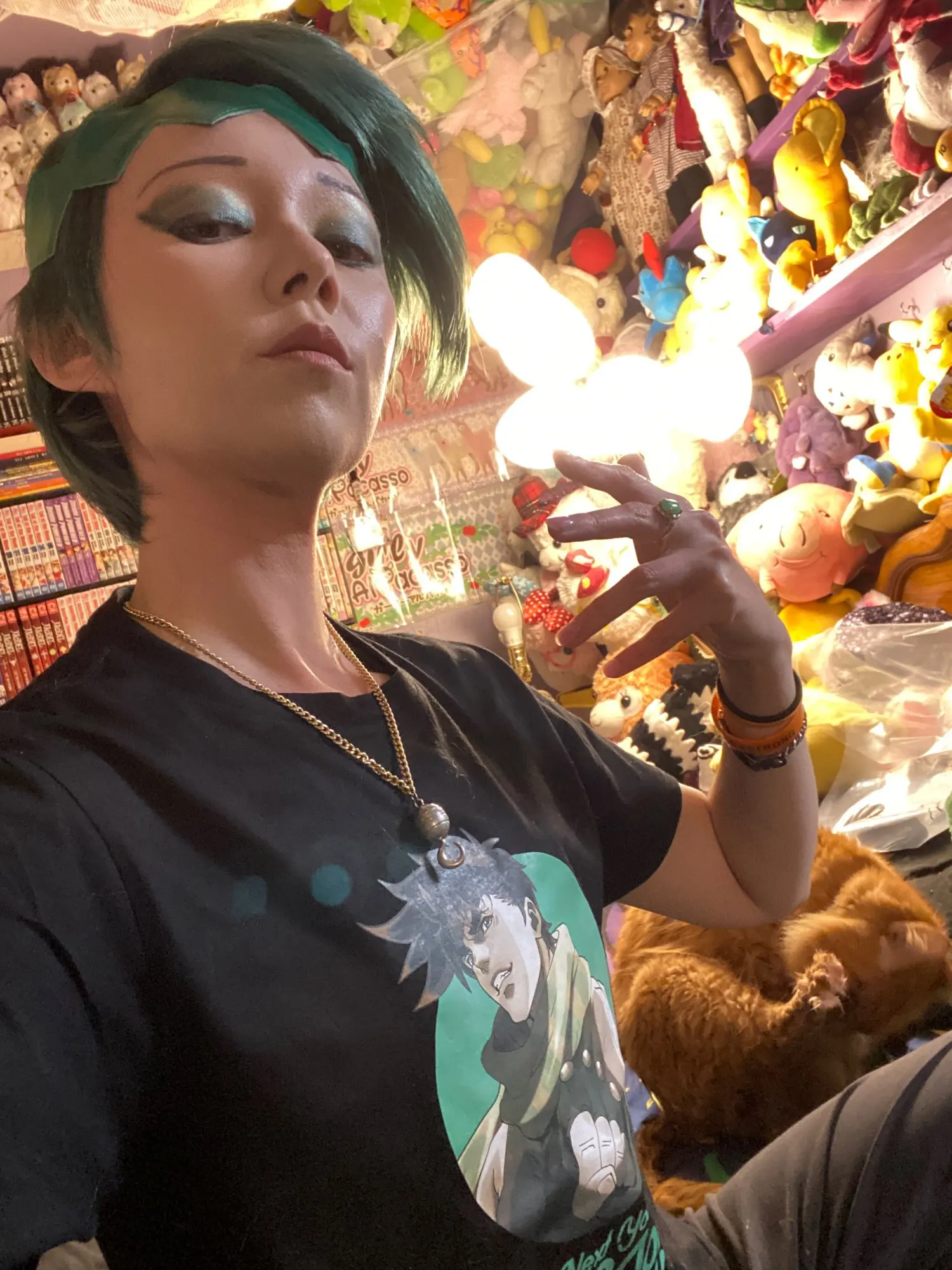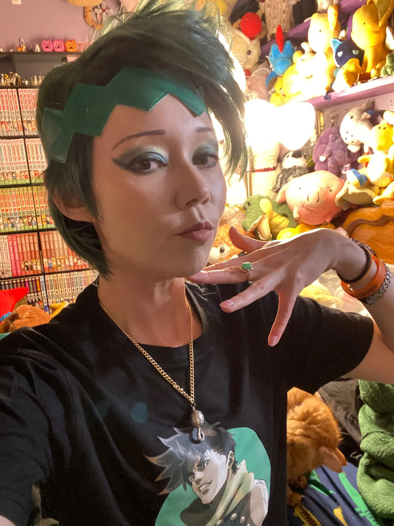 Короткая повязка на голову с зеленым париком JOJO's Bizarre Adventure Rohan Kishibe для косплея, термостойкие волосы + шапочка для парика, реквизит для вечерние для мужчин