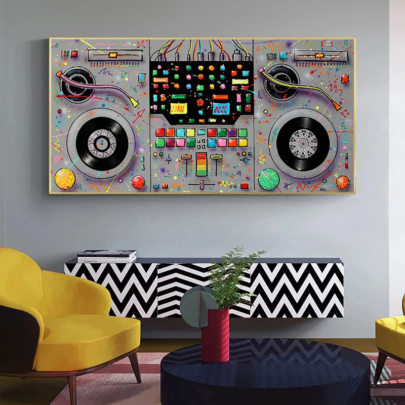 Граффити на холсте Плакаты и принт Бэнкси DJ обезьяна холст настенн...