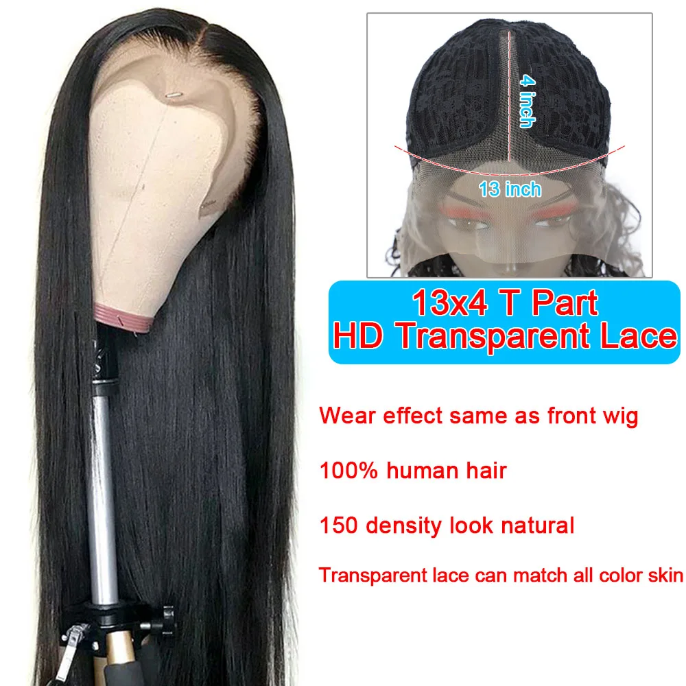 Парик из натуральных человеческих волос с прозрачной сеткой, парик с застежкой 4x4, парик с прямыми T-образными деталями, бразильские парики 150% без повреждений для женщин, человеческие волосы
