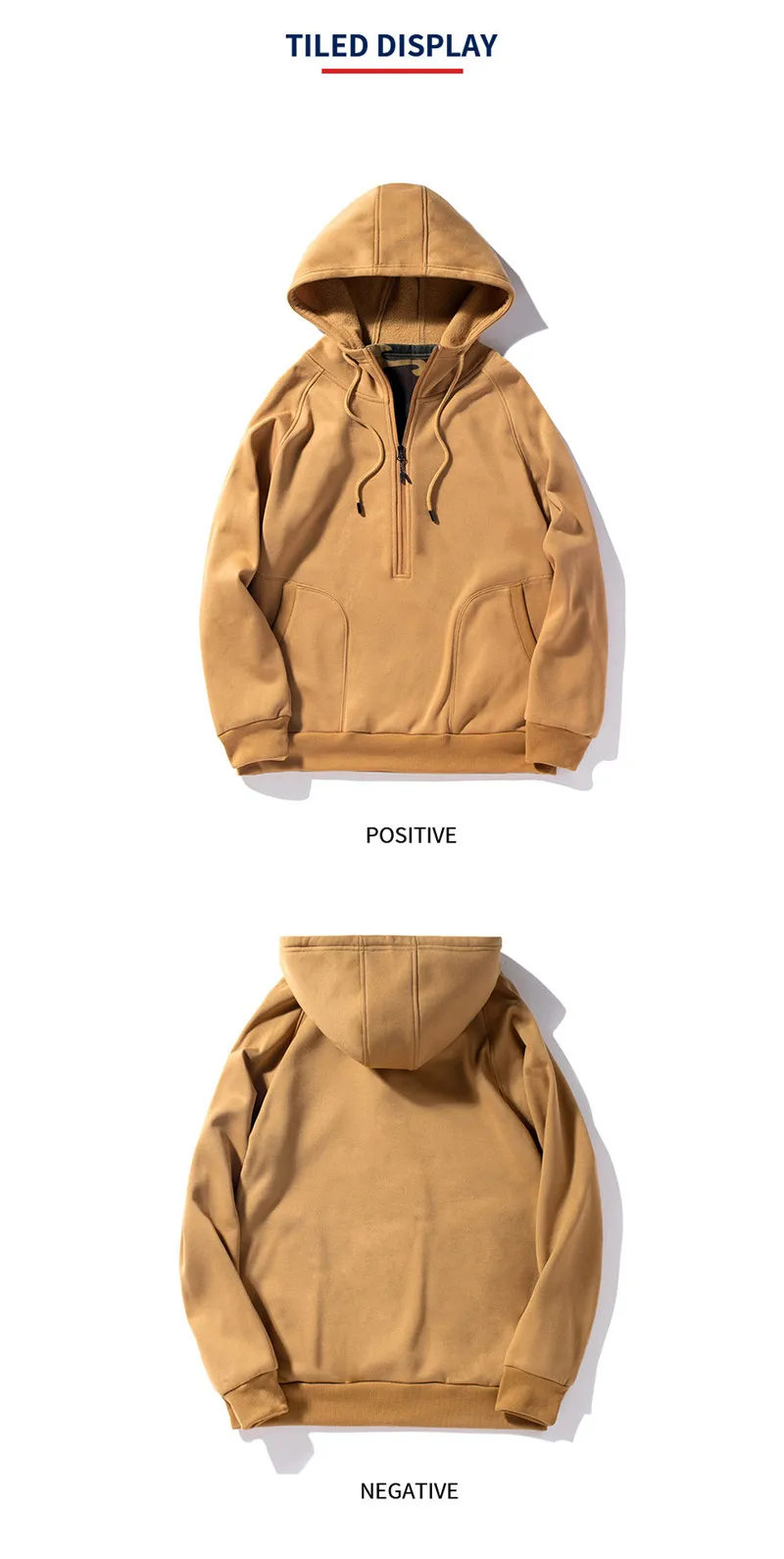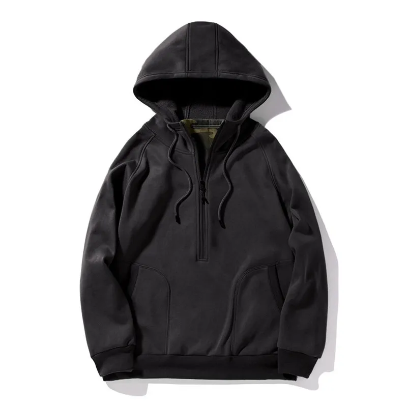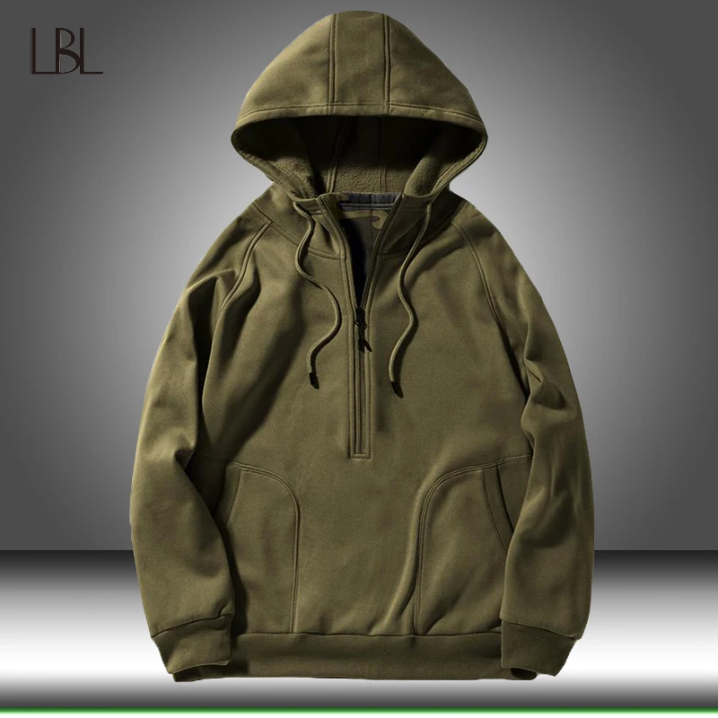 Свитшот мужской с флисовой подкладкой, худи на молнии, Классический пуловер с капюшоном в стиле хип-хоп, утепленная верхняя одежда в стиле милитари, осень