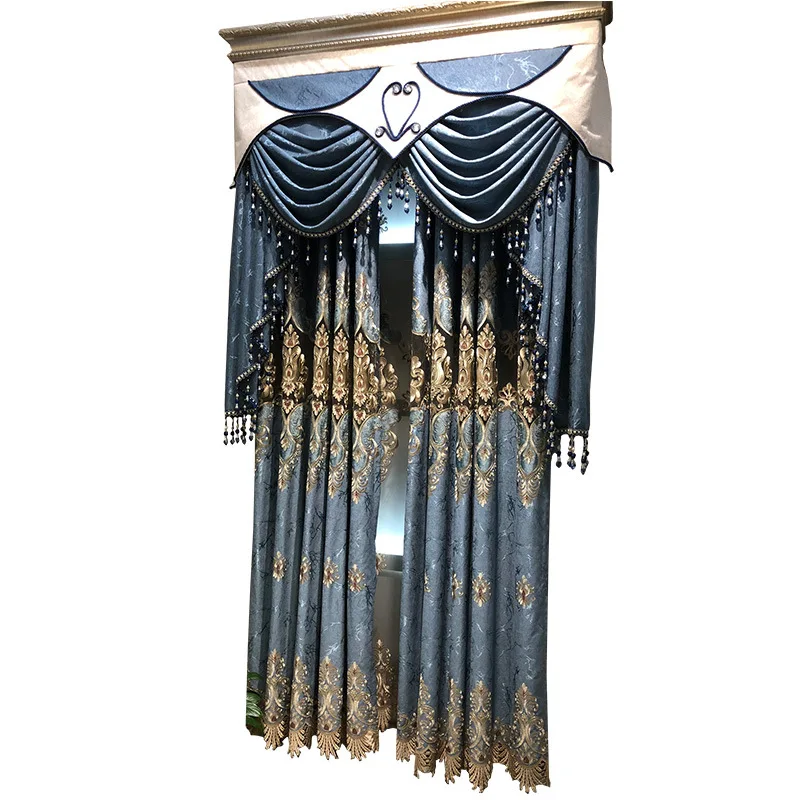 Занавески в европейском стиле, высококачественные вышитые занавески с вышивкой, для гостиной, виллы на заказ, синие шенили, водорастворимые занавески s