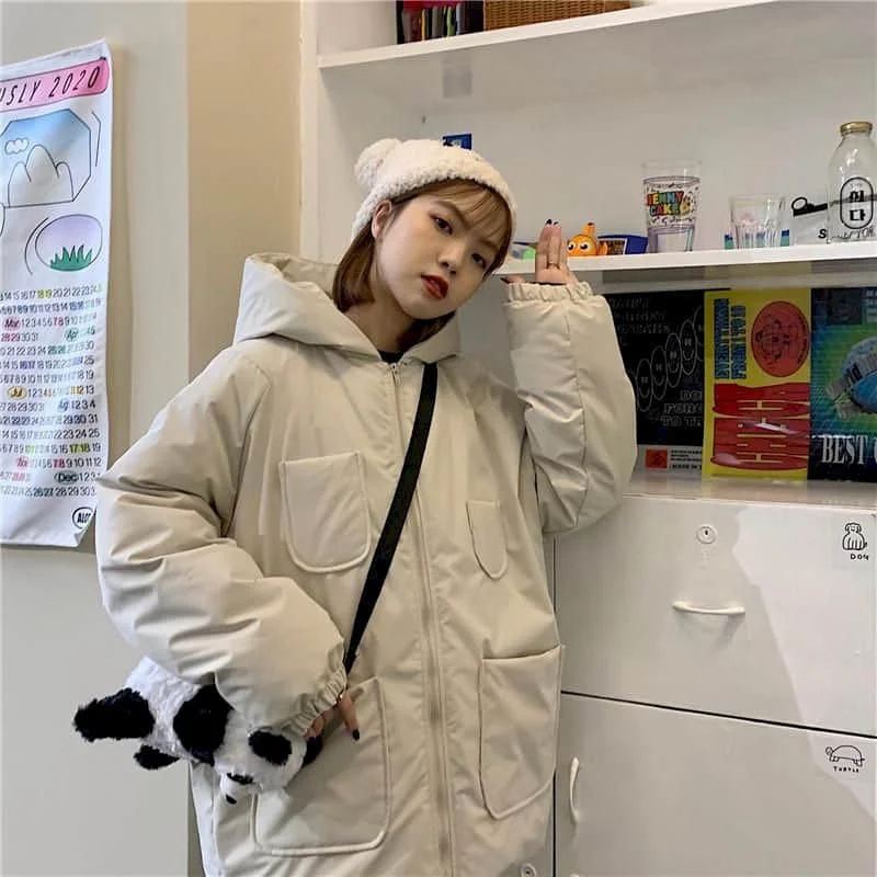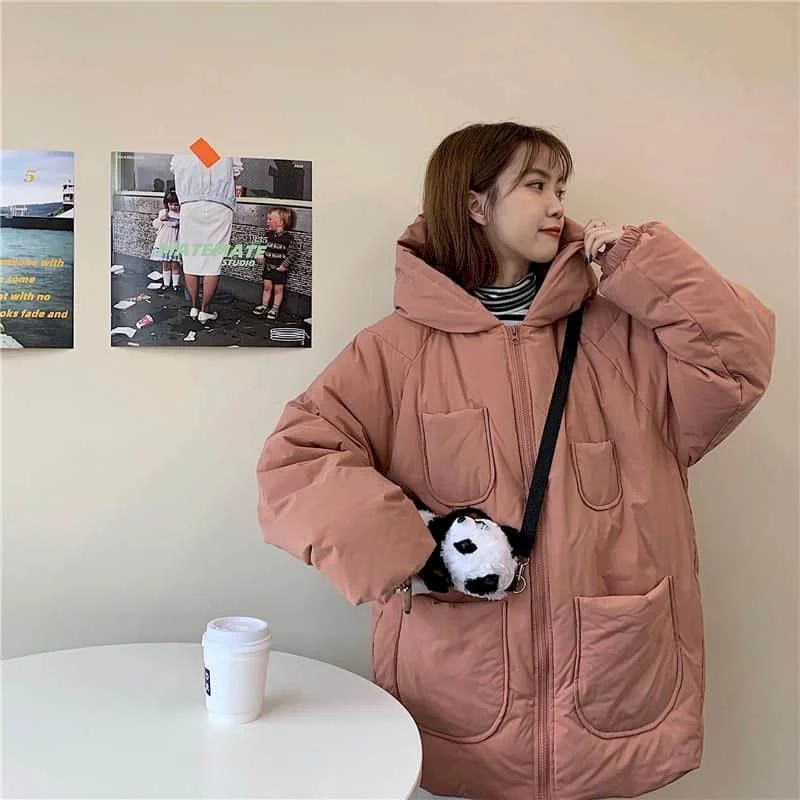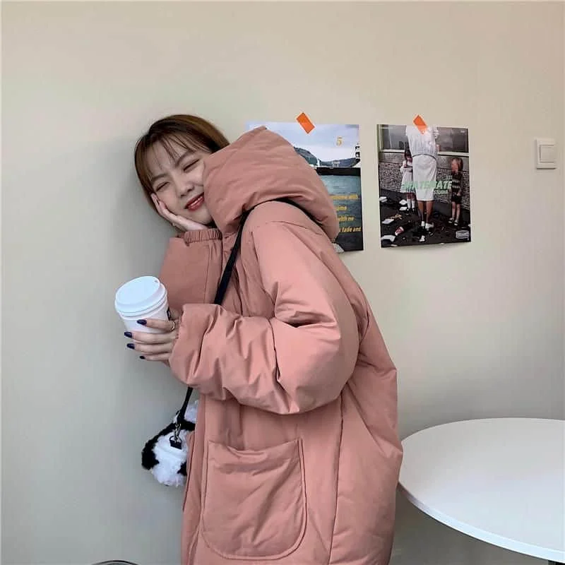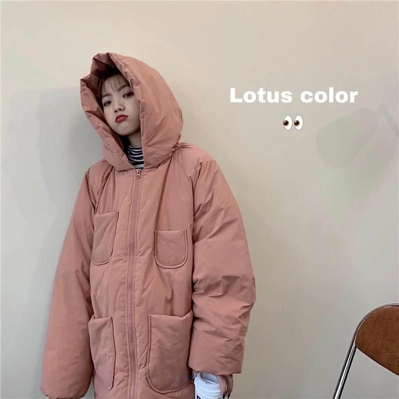 Карамельных цветов, стеганая куртка для девочек, кавайная Новинка Зима 2022, корейский стиль, большие размеры, универсальная куртка с капюшоном, утепленное пальто для кибер-праздников