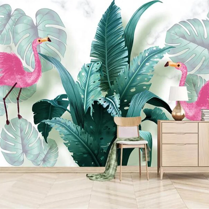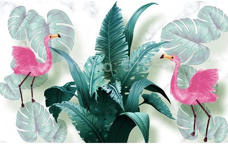 3D фотообои на заказ, тропические растения, лес, фламинго, настенна...