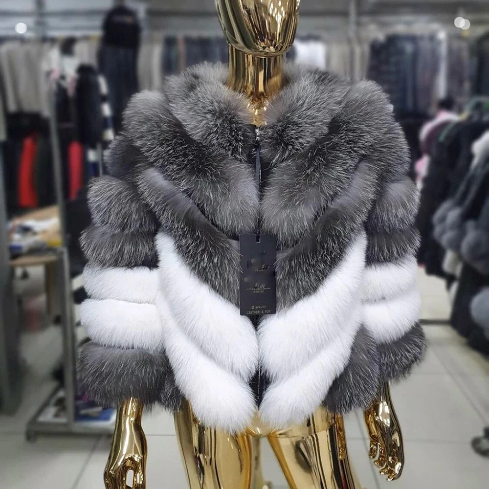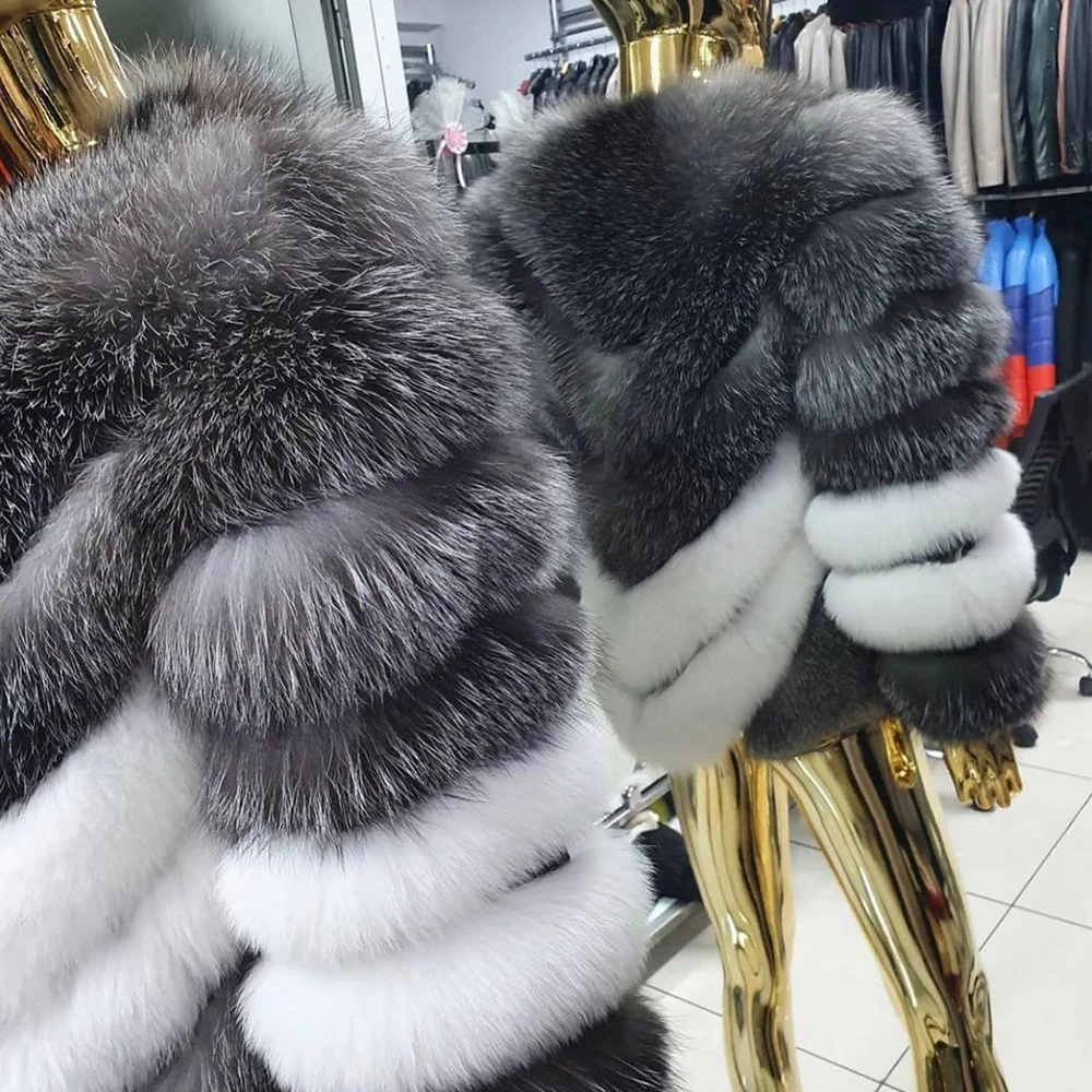 Шуба из натурального Лисьего меха; Женские зимние теплые натурального меха с лисьим мехом на толстом саржа серой нитью Белый короткая куртка Верхняя одежда модный Дамский жакет FC-443