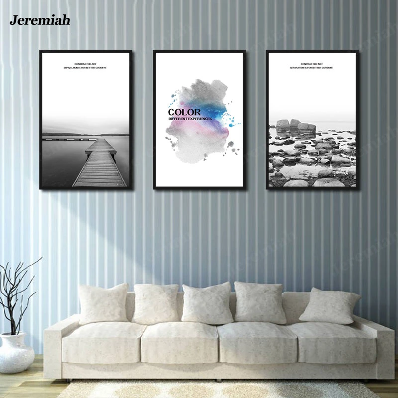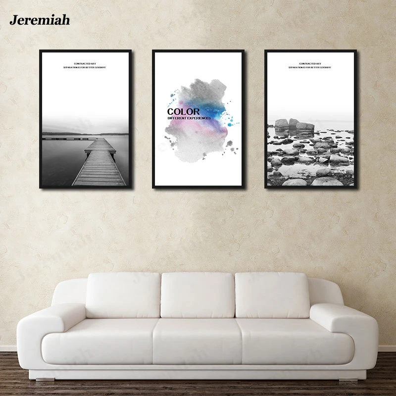Декор для дома, гостиной, картина, мост, морской риф, черно-белый постер, HD холст, современный скандинавский пейзаж, настенная живопись