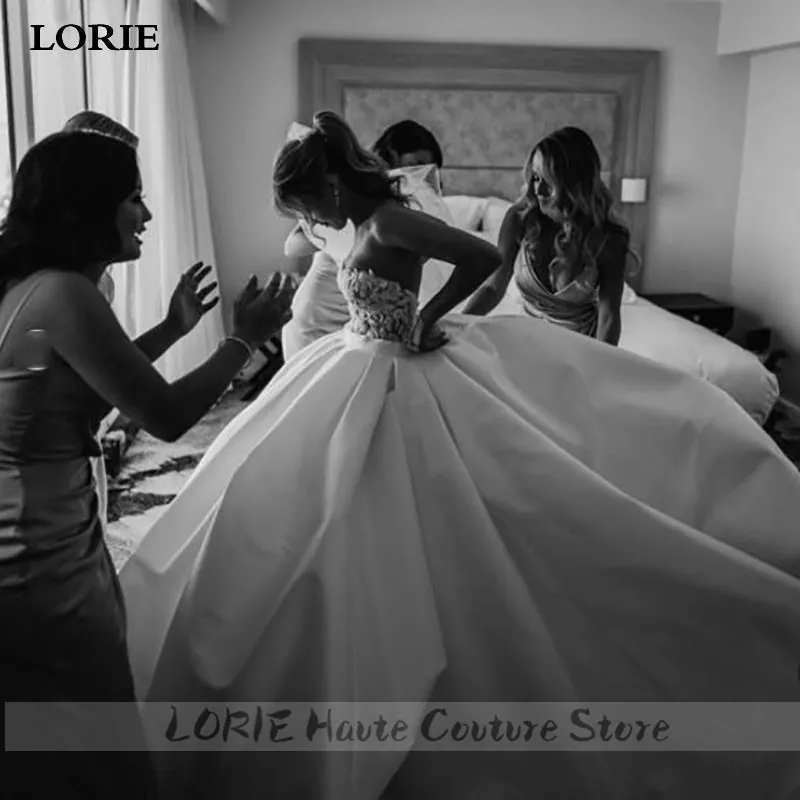 Свадебные платья принцессы LORIE, атласное кружевное свадебное платье с сердечком, со шлейфом, цвета слоновой кости, Свадебное бальное платье