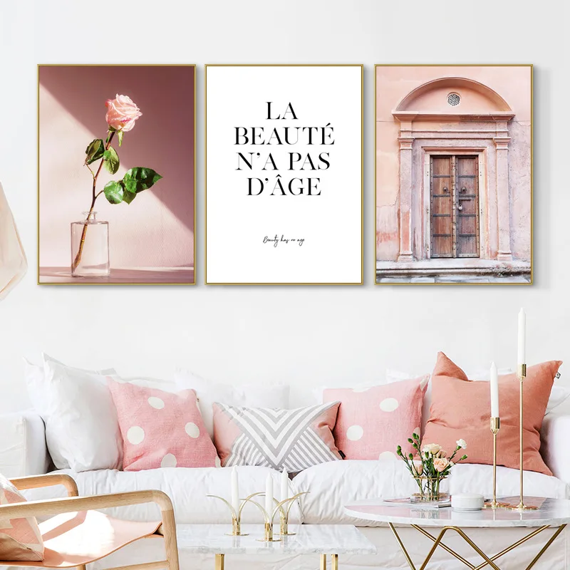 Розовая девушка, эстетическое украшение комнаты, картины, плакаты, цветочные настенные холсты картины, фотографии, современное искусство, фон для дивана, украшение для дома