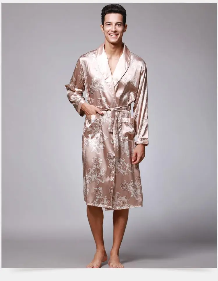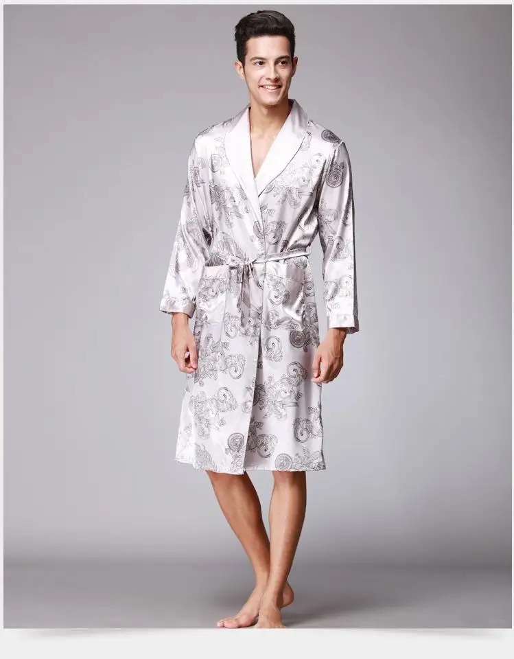 Шелковые халаты с принтом пейсли для мужчин, атласная пижама для по...