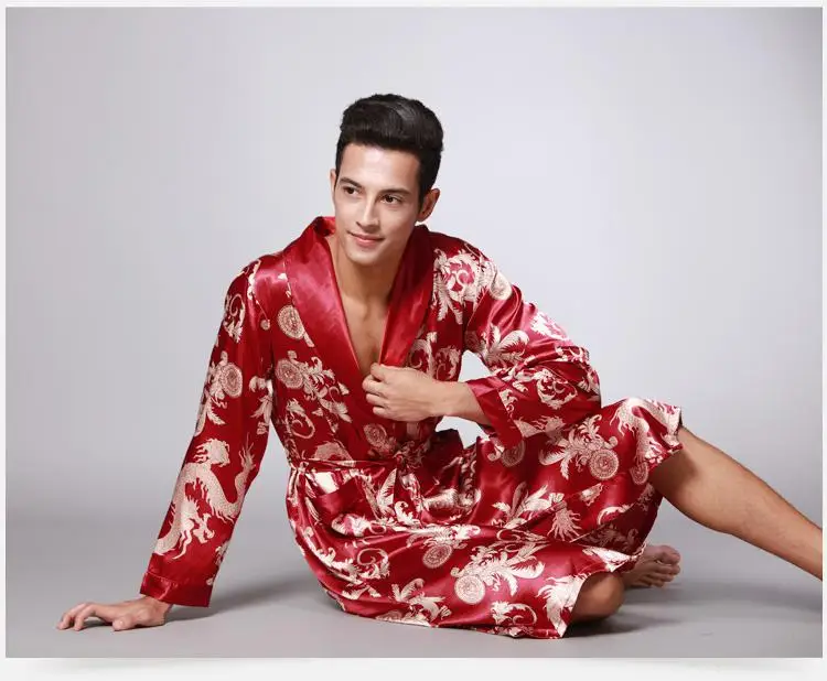 Роскошный китайский халат King Dragon для мужчин, атласная Шелковая...