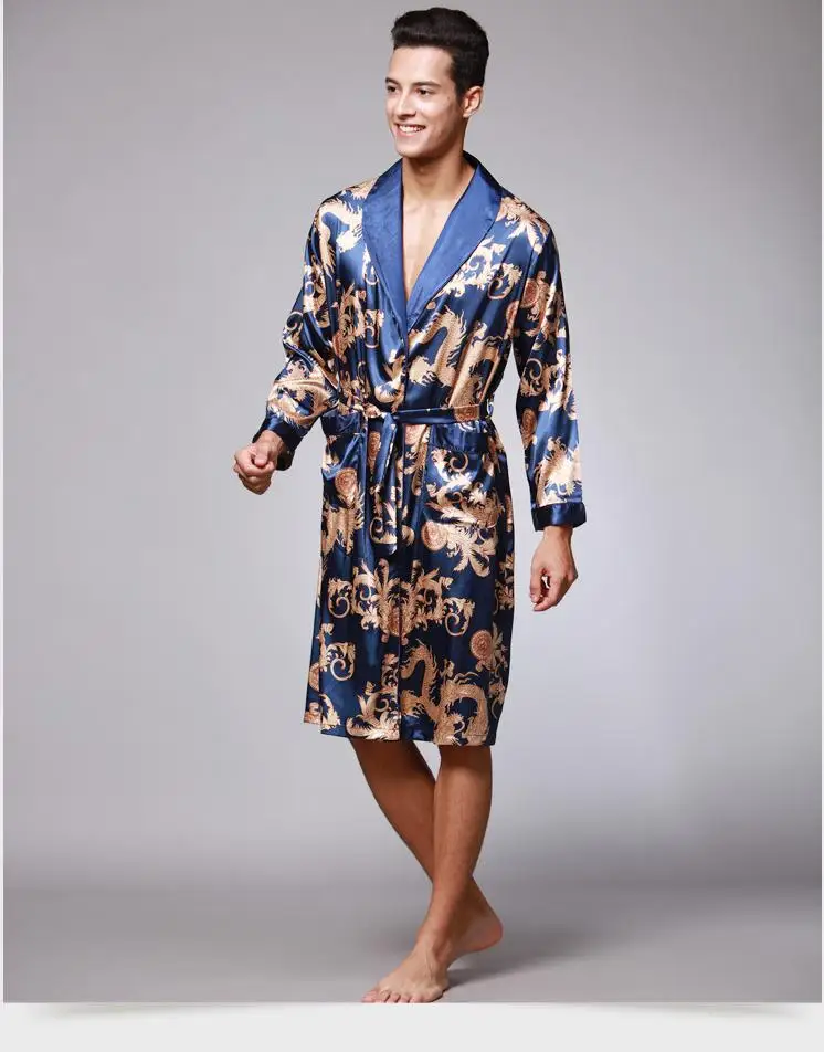 Мужской Атласный халат с длинным рукавом и принтом, Свободный Повсе...