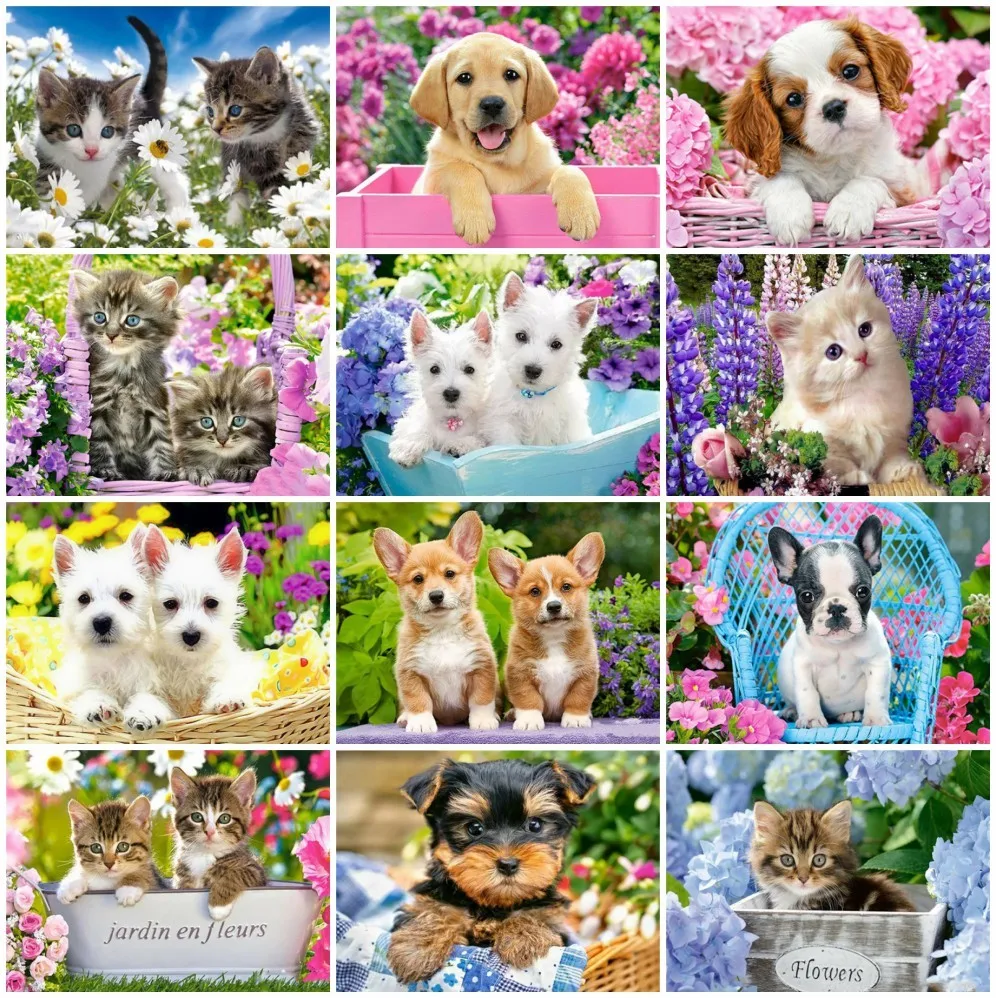 AZQSD полностью квадратная Алмазная картина собака кошка картина Стразы Алмазная вышивка животные мозаика рукоделие домашний декор