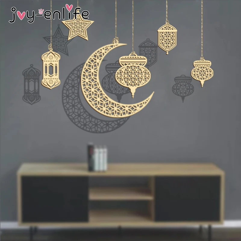 Рамадан ИД Мубарак деревянное ремесло Луна деревянное украшение для дома подвесное украшение кулон Ислам Мусульманский ИД Мубарак Декор