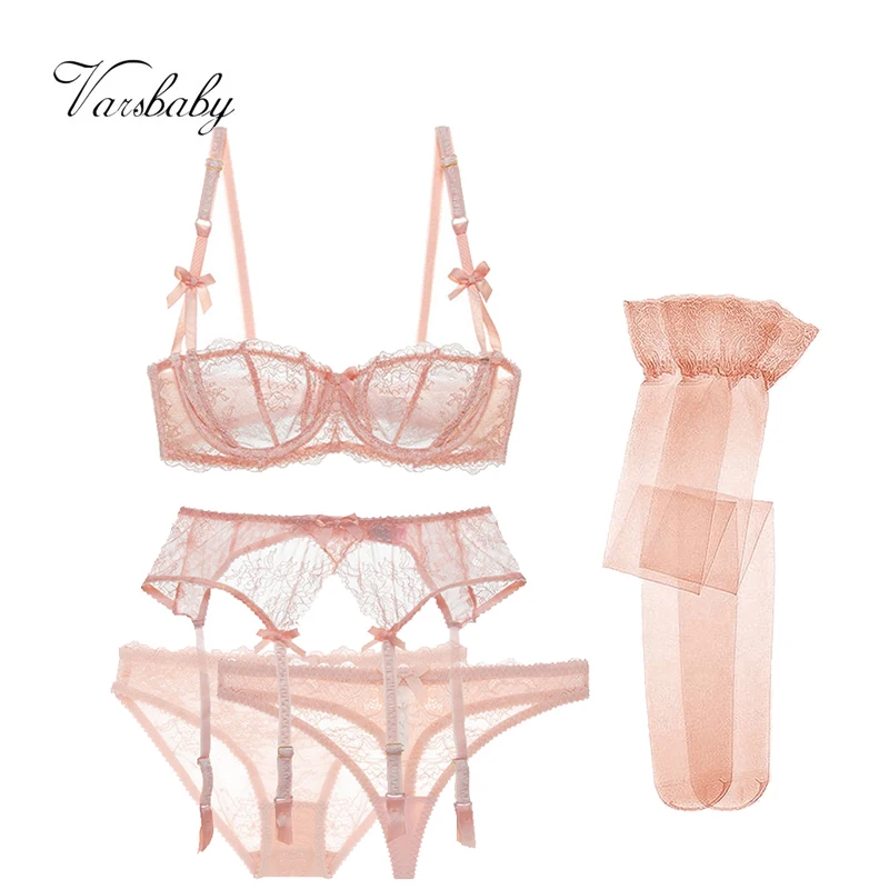 Комплект женского нижнего белья Varsbaby, кружевной бюстгальтер с цветочным принтом, пояс с подвязками, трусики, стринги, чулки, 5 шт.лот