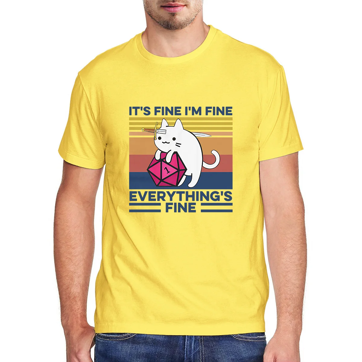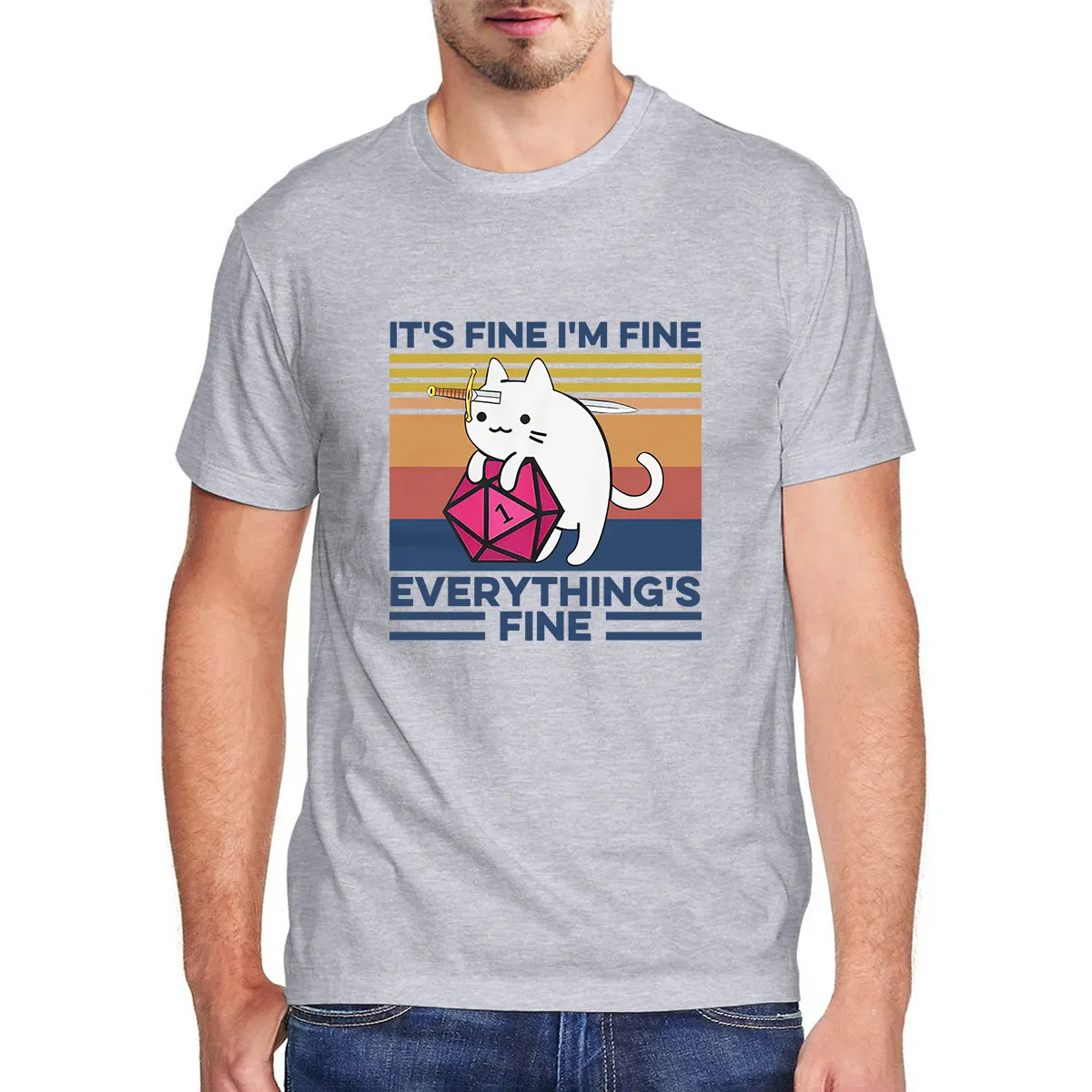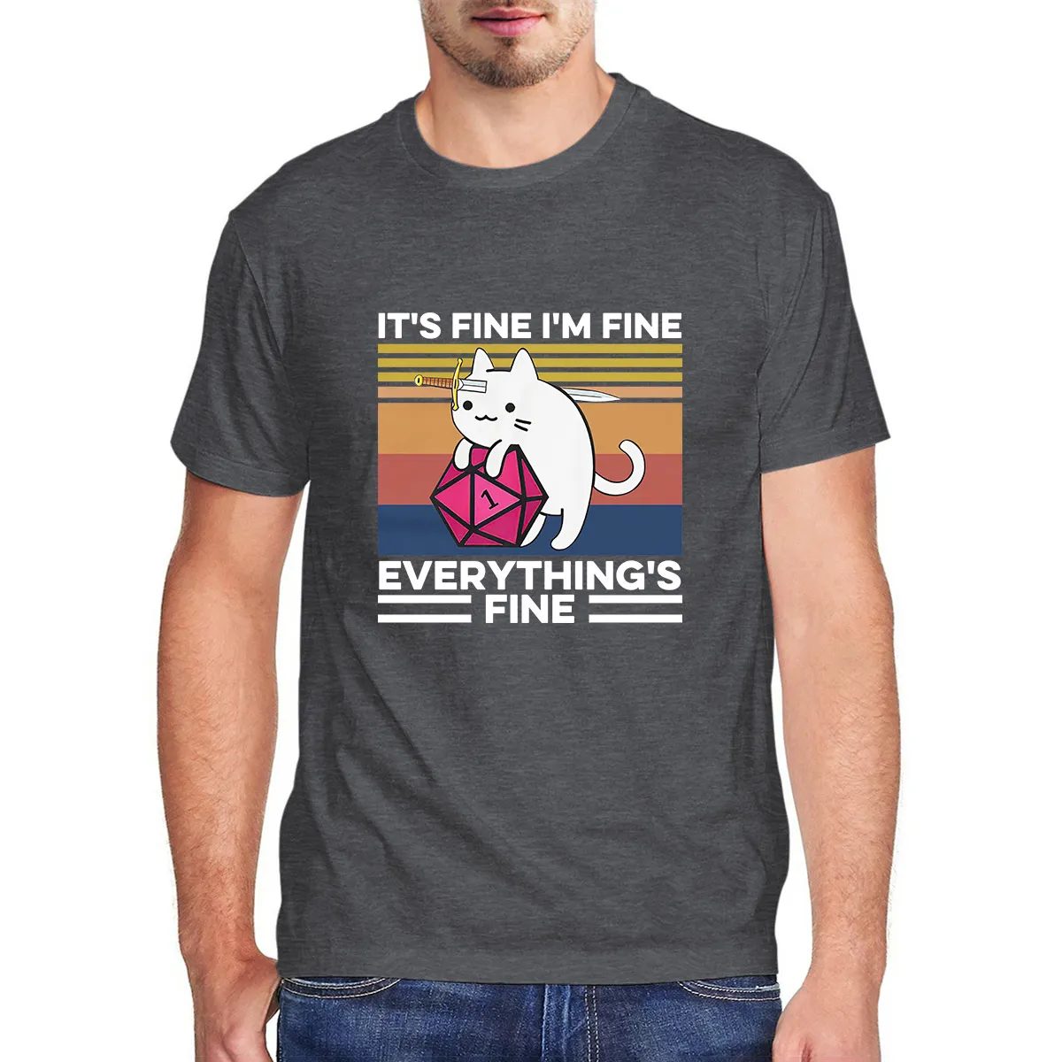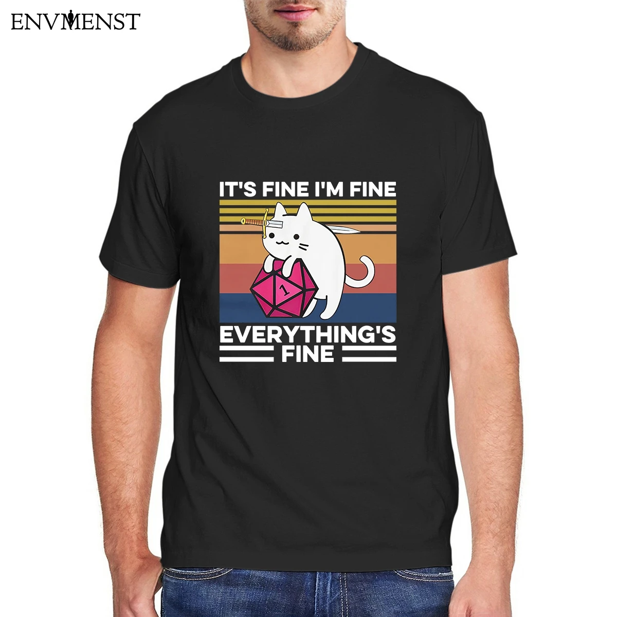 ENVMENST, It's Fine, I'm Fine, Everything is Fine, футболка, Cat with Knife Hug Dungeon, мужская футболка с хлопковым принтом, футболка, повседневная мужская одежда, футболки