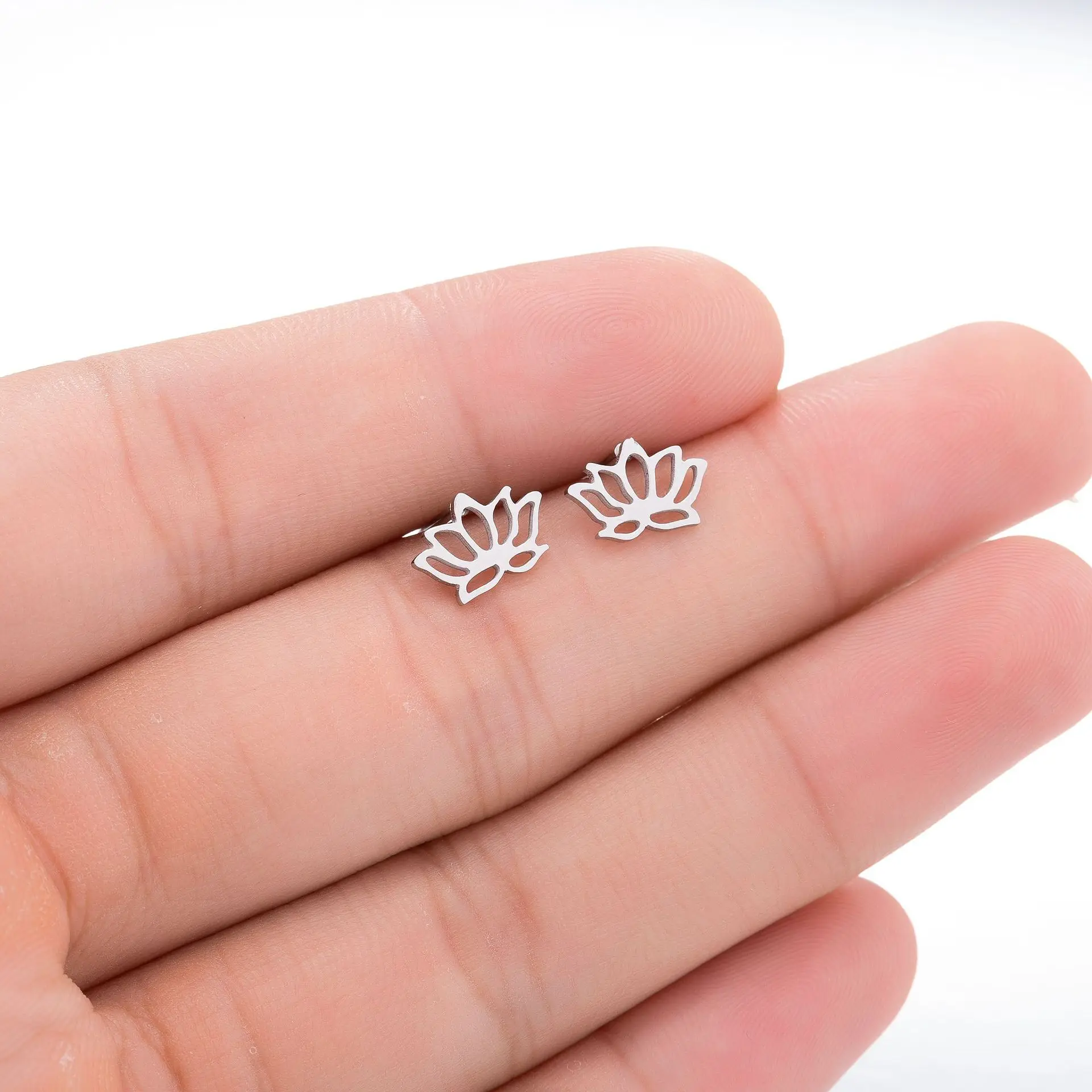 Женские серьги-гвоздики с лотосом, серьги из нержавеющей стали в минималистичном стиле, серьги-гвоздики для пирсинга в стиле K-POP, бижутерия, 2021