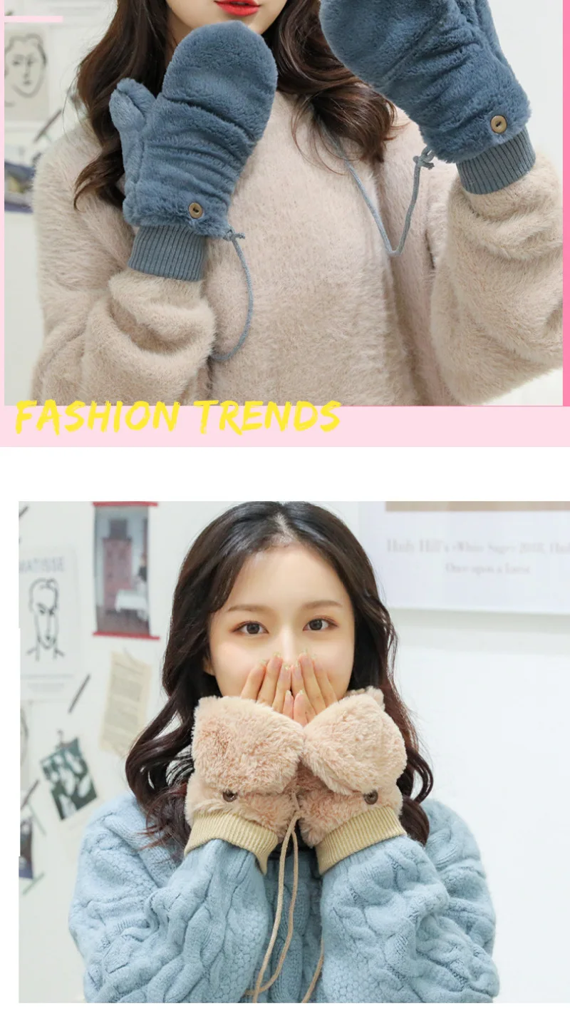 Женские зимние утепленные кашемировые плотные милые однотонные Варежки перчатки с закрытыми пальцами уличные велосипедные ветрозащитные мягкие