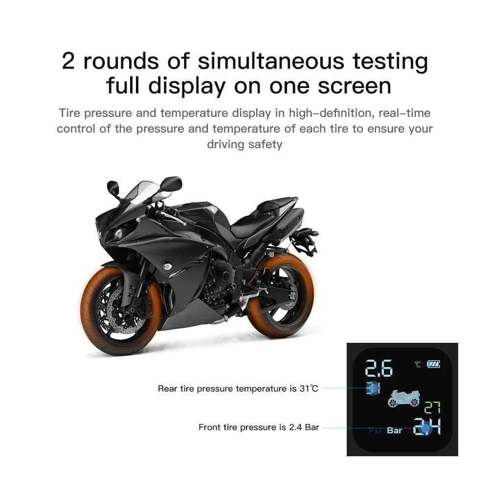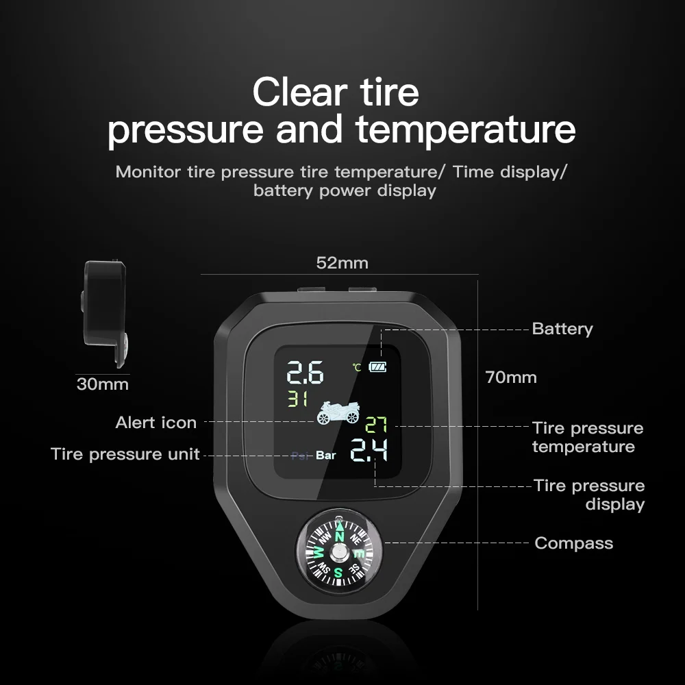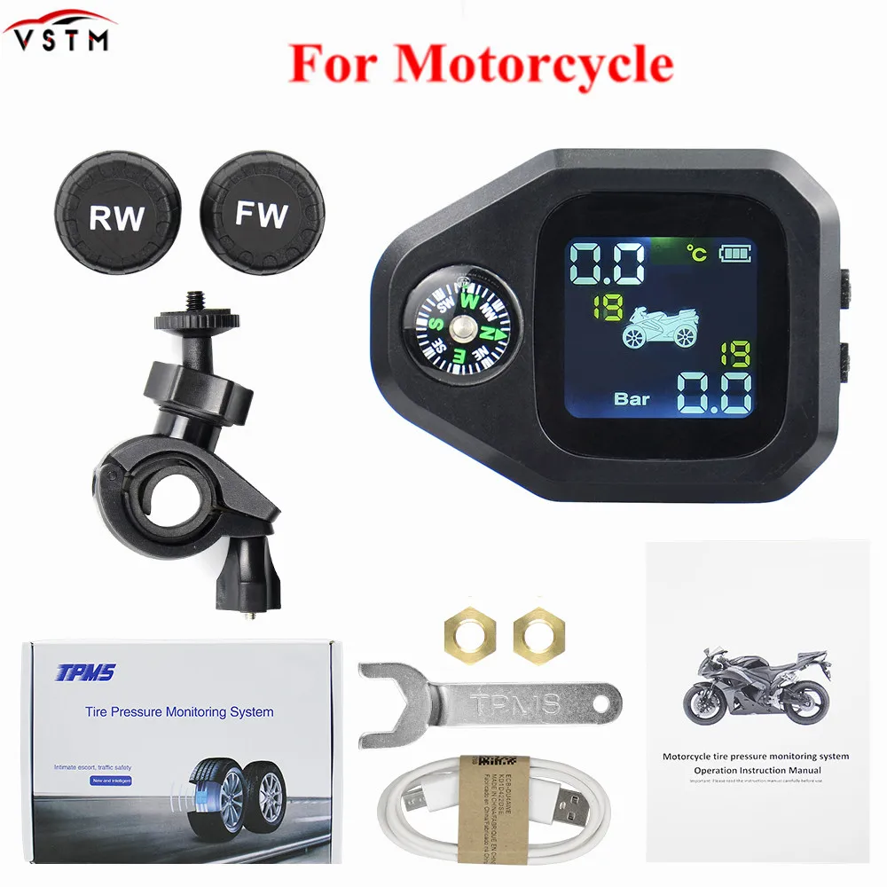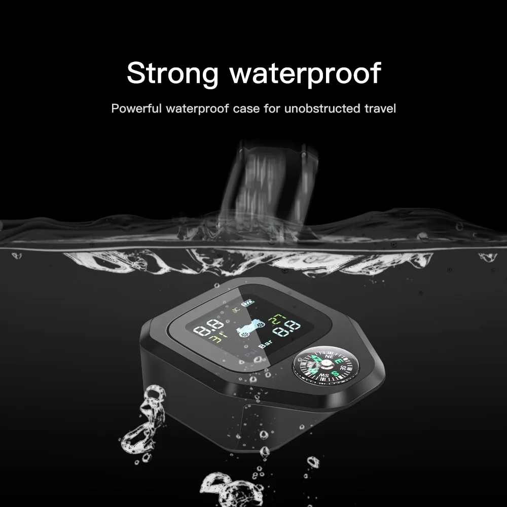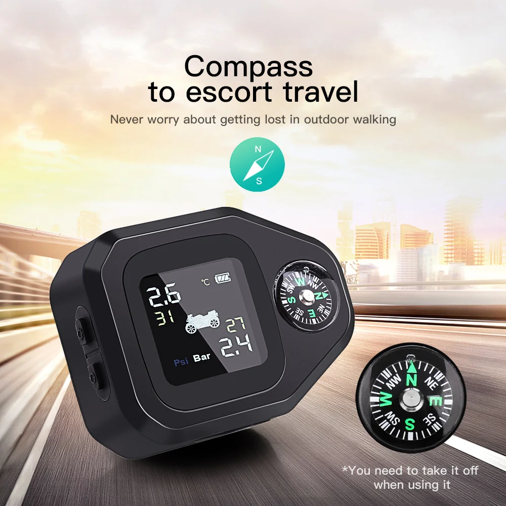 Новейший USB солнечной зарядки мотоцикла TPMS двигатель шин давление шин контроль температуры сигнализация с 2 внешними датчиками* С компасом, разнообразными функциями