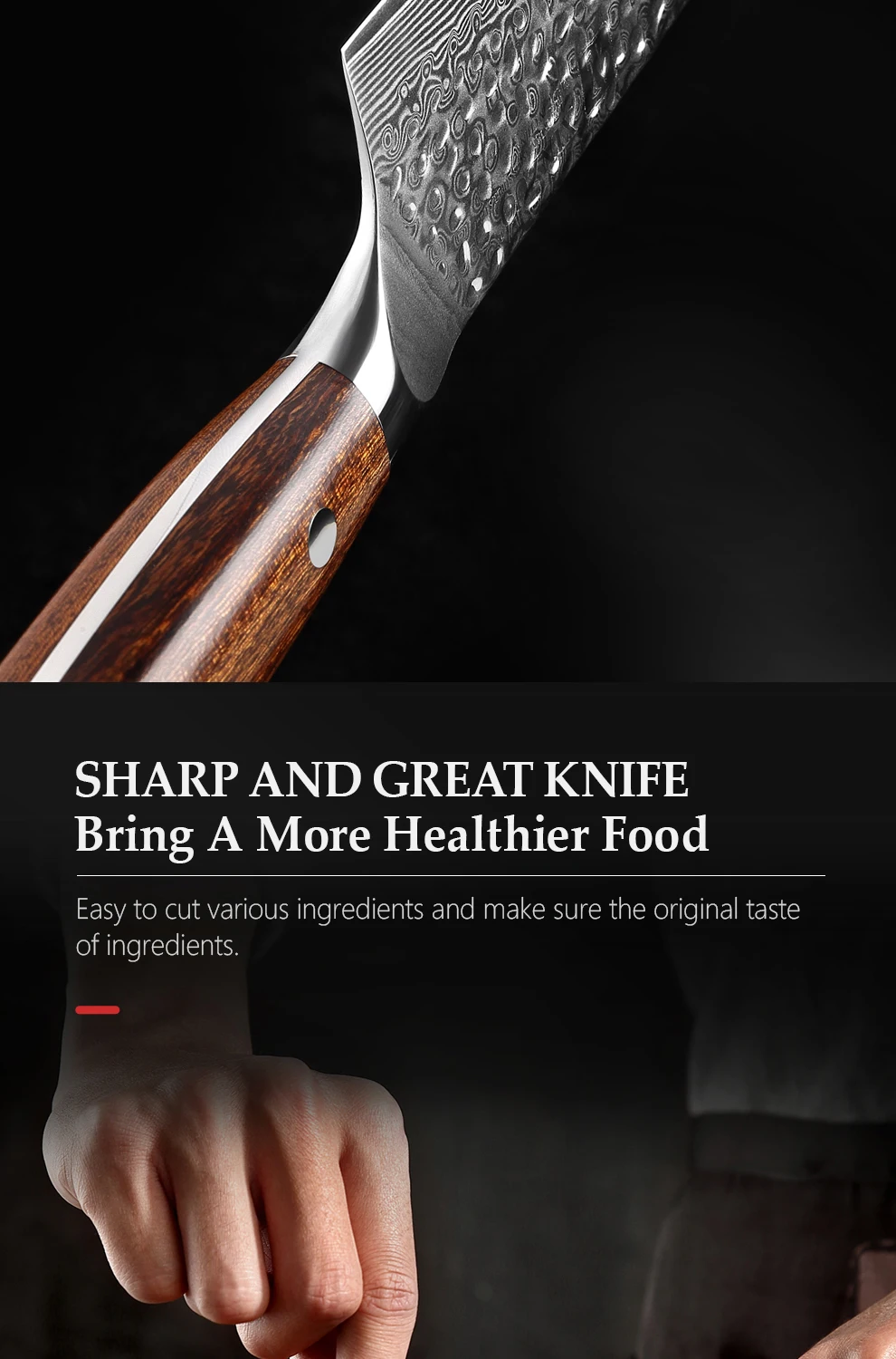 Нож шеф-повара из дамасской нержавеющей стали, 67 слоев, 5 дюймов