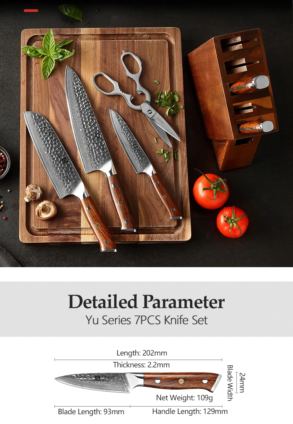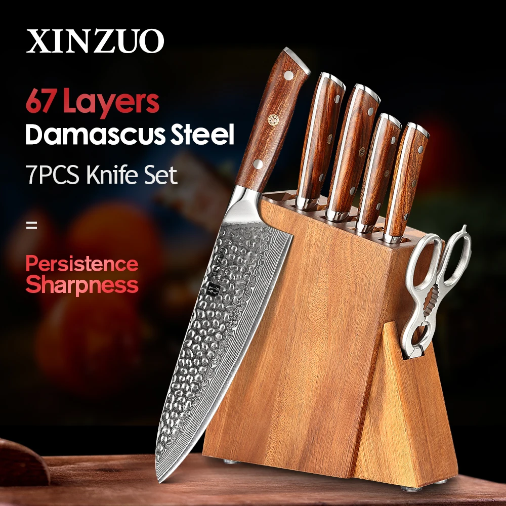 Набор ножей из дамасской стали XINZUO Yu Серия 7 шт.