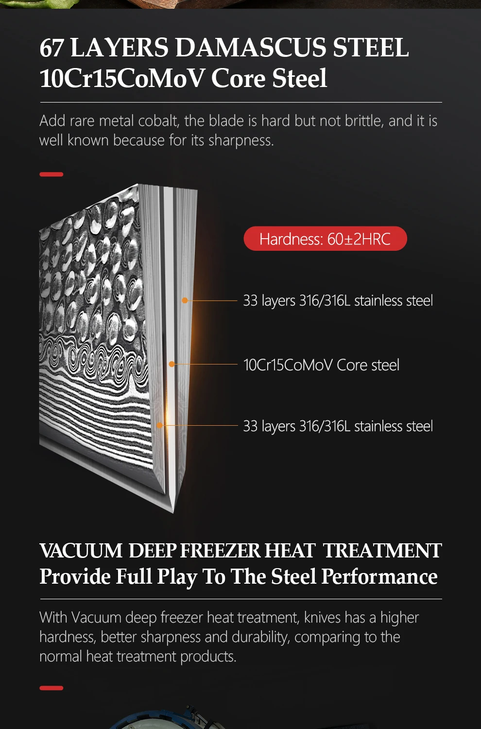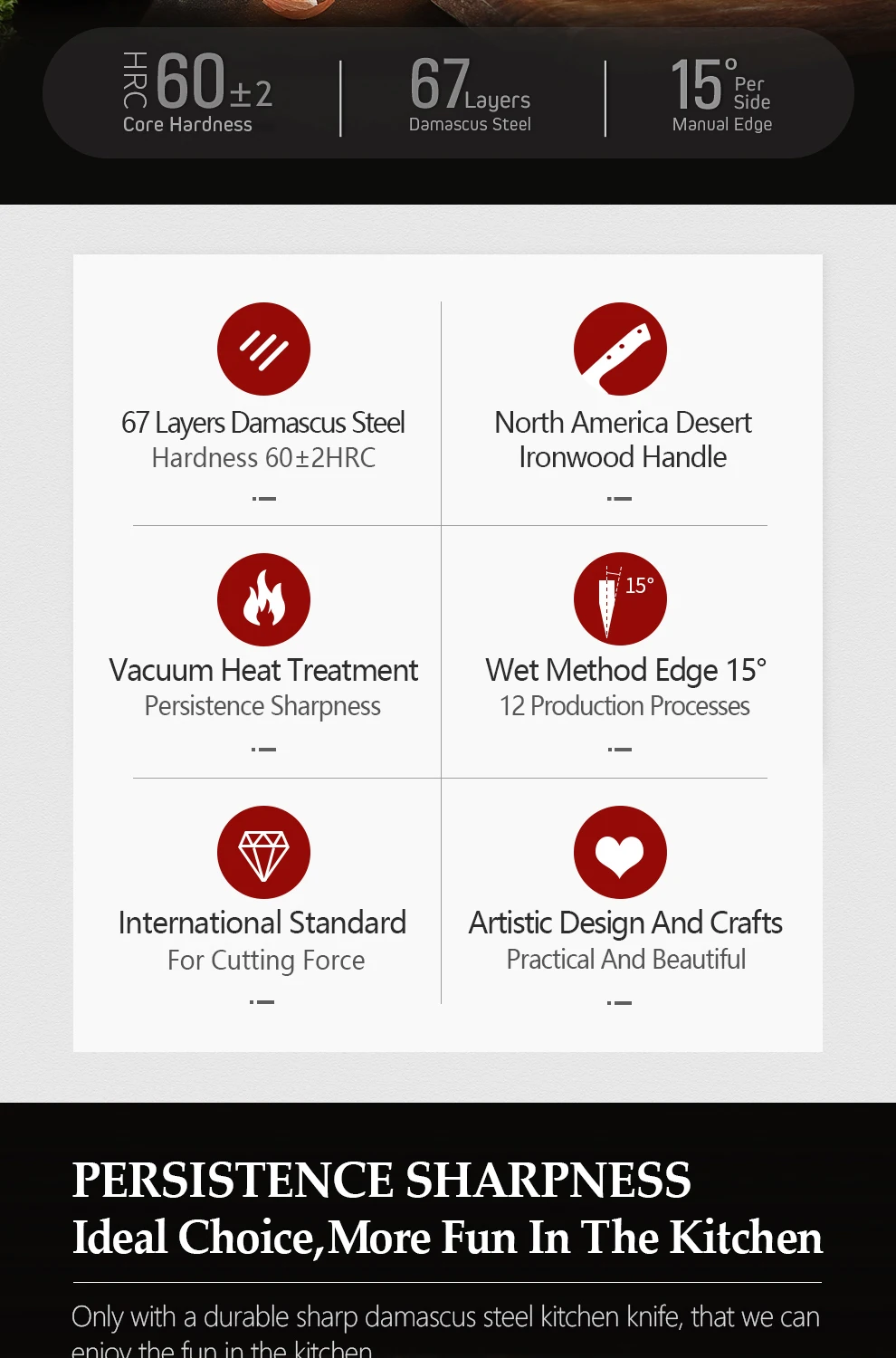 Нож шеф-повара из дамасской стали, 67 слоев, 8,2 дюйма