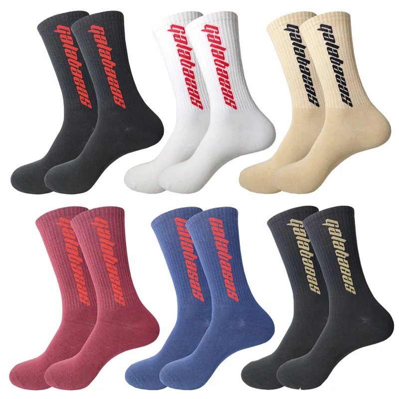 Модные мужские хлопковые носки, женские уличные носки Kanye West Ins, короткие носки в стиле хип-хоп с надписью, длинные носки для скейтборда