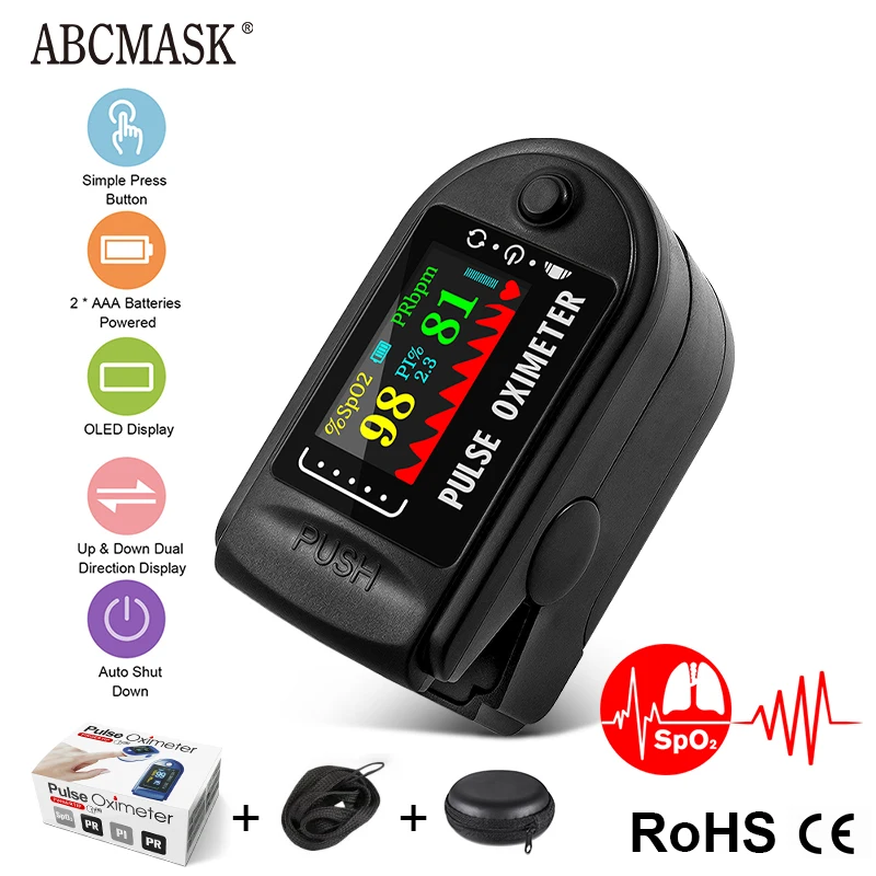 Особенности:Пальчиковый Пульсоксиметр для простой ежедневной проверки, может использоваться в семьях, школах, социальных центрах, общественных центрах и т. д.Предназначен для измерения насыщения крови кислородом и пульса взрослых или детей, и вы можете использовать его для измерения до или после занятий спортом.Оснащен четким tft-экраном, показывающим значение SpO2, частоту пульса (PR), импульсную волну и т. д.Простой в использовании, откройте зонд, затем вставьте один палец в зонд, включите оксиметр, через несколько секунд результат измерения можно прочитать непосредственно с экрана.Питание от 2 батареек AAA (не входят в комплект), Пульсоксиметр автоматически выключается в 8 с, если нет сигнала пальца.Компактный размер и легкий, с ремешком, удобно носить с собой и использовать в любое время в любом месте.Характеристики:Цвет: белый и синийТип дисплея: TFT дисплейЗаявленная точность SpO2: 70%-99%, ± 2% на этапе 80%-99%, ± 3% на этапе 70%-79%PR заявленная точность: 30-240bpm, ± 1bpmИсточник питания: 2 * батарейки типа "ААА" (не входит в комплект)Рабочая температура: 5 ℃-40 ℃Рабочая Влажность: 15%-80%Атмосферное давление: 70kPa-106kPaТовар Размеры: 6*3,2*3,2 см/2,4*1,3 * 1.3inВес изделия: 25 г/0,88 унцийПосылка Размеры: 7*7*4 см/2,8*2,8 * 1.6inПосылка Вес: 41 г/1,4 ozУпаковочный лист:1 * оксиметр1 * ремешок1 * Руководство пользователя (на английском языке)