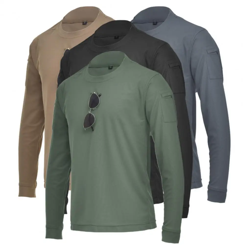 80% Лидер продаж! Для мужчин Повседневное с длинным рукавом и o-образным вырезом, впитывающий пот, с карманами, Свободный пуловер Футболка