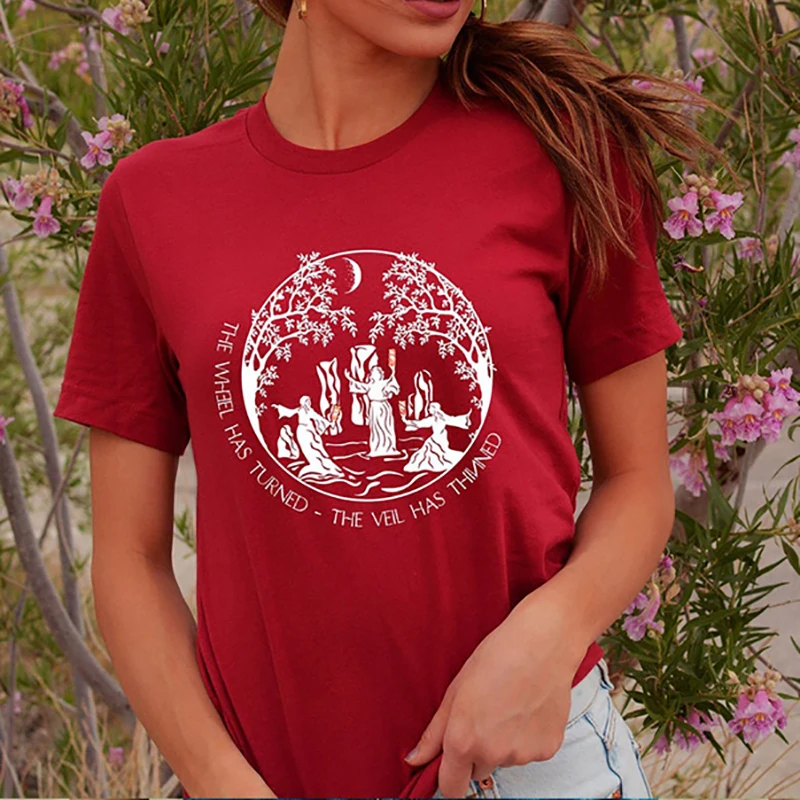 Samhain Druid Dancers, забавные женские футболки с принтом, футболка с черепом, футболка в молодежном стиле, хлопковая одежда размера плюс