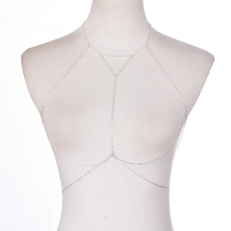 Модный бюстгальтер с цепочкой золотого и серебряного цвета, многослойная Сексуальная Пляжная портупея для бикини, V ожерелья, Женская цепочка для тела, ювелирное изделие, подарок
