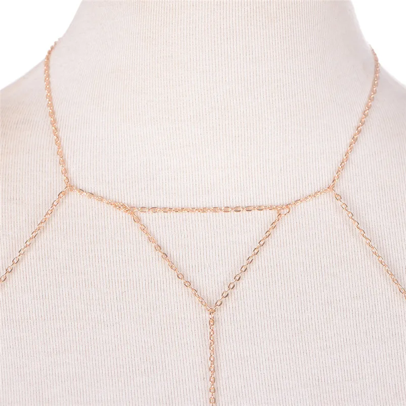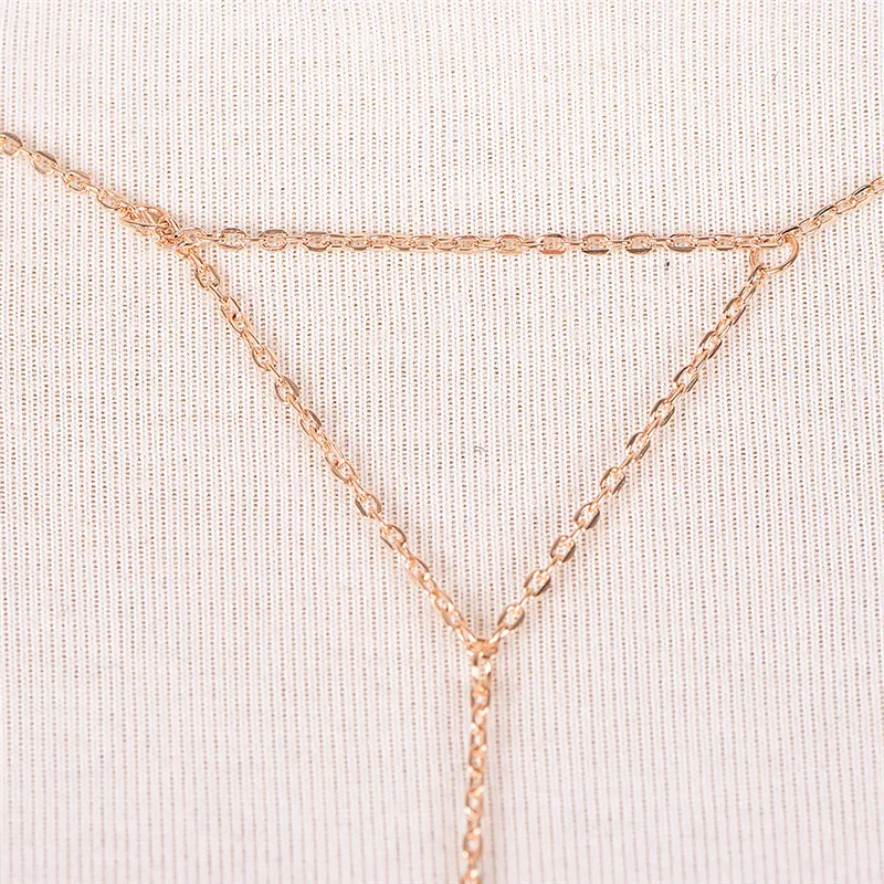 Модные Золото звено цепи бюстгальтер многослойных сексуальное пляжная портупея для Бикини V ожерелья для женщин, ювелирное изделие, подарок