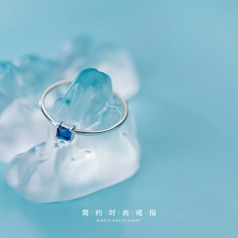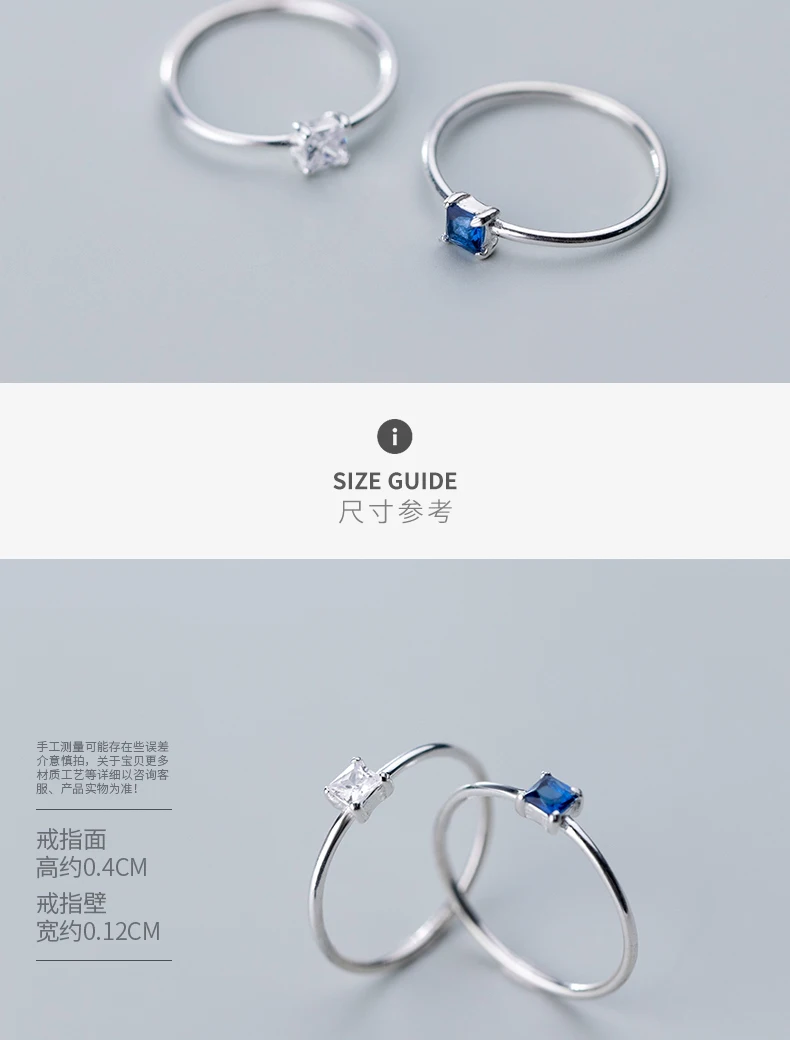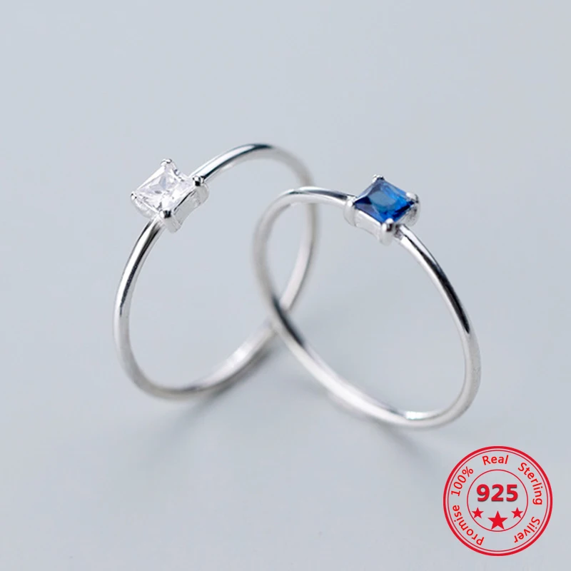 BITWBI, серебро 925 пробы, голубой драгоценный камень, бриллиант, простое, милое, ослепительное, квадратное, CZ кольцо на палец, размер 6, 7, 8, для женщин, украшения для девочек, подарок