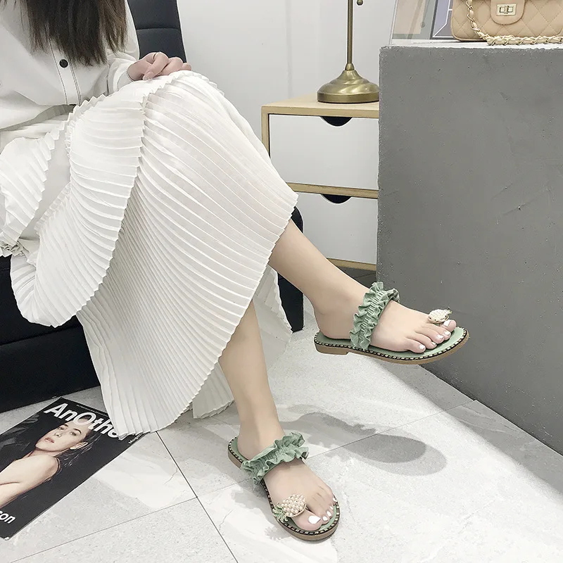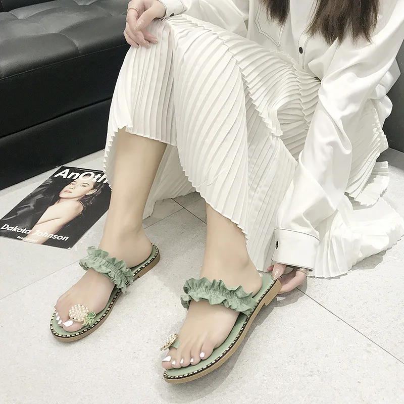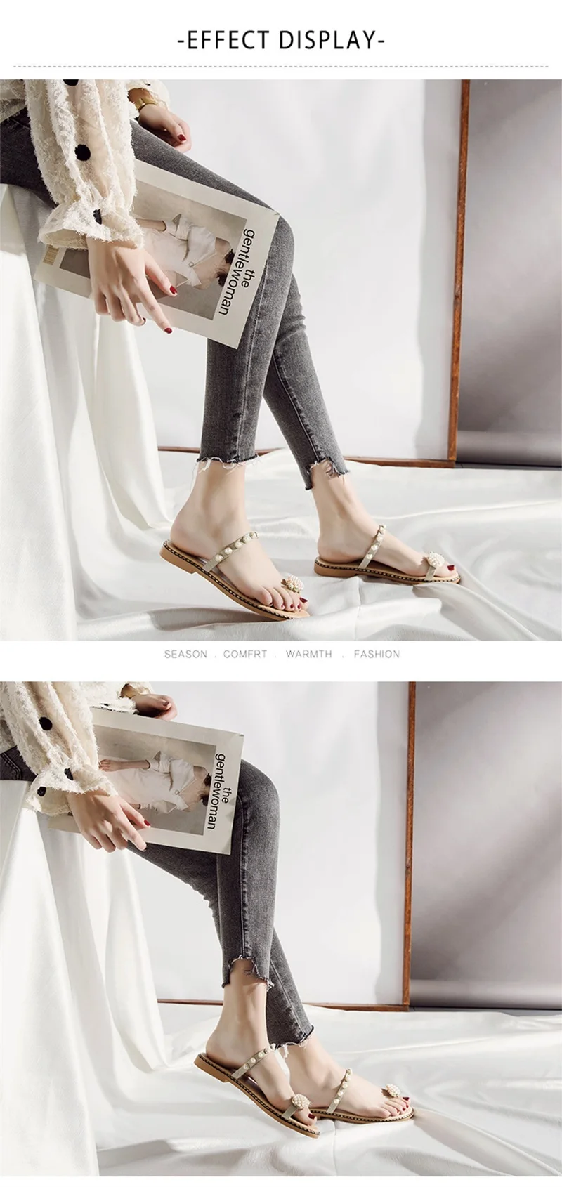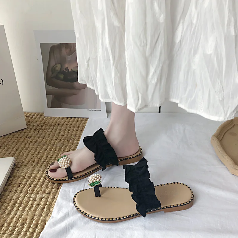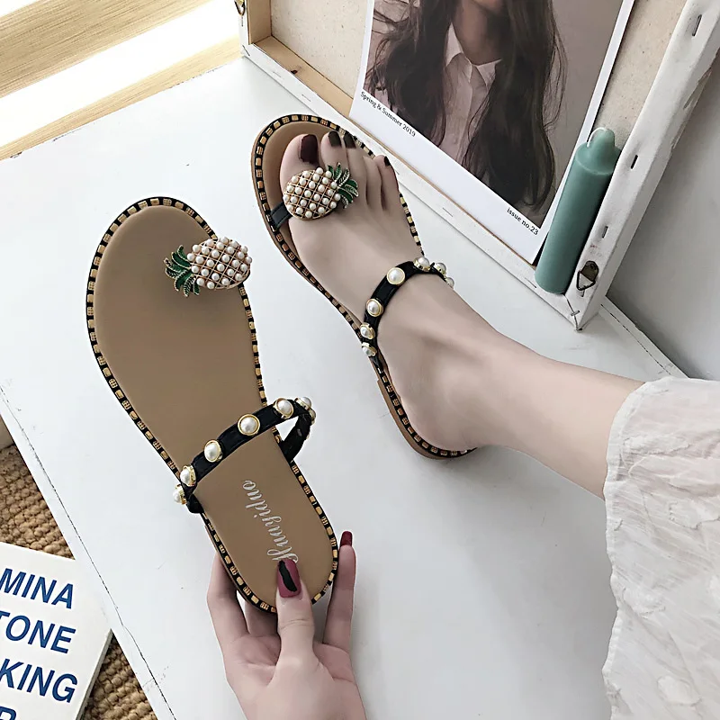 Женские сандалии с ананасами, пляжные шлепанцы, без застежки, с жемчугом, на плоской подошве, Повседневные тапочки, Размеры 35-43, лето 2021