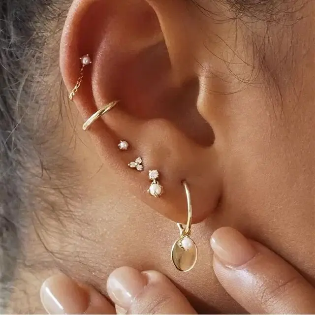 100% 925 пробы серебро 18k Позолоченные ювелирные изделия Vermeil изысканные мульти пирсинг маленькие крошечные жемчужные бусы серьги