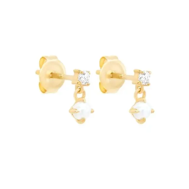 100% 925 пробы серебро 18k Позолоченные ювелирные изделия Vermeil Изящные серьги с маленькими крошечными жемчужными бусинами