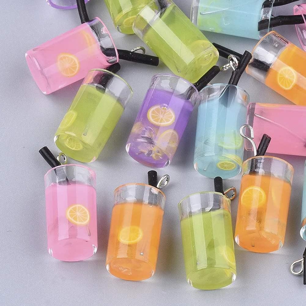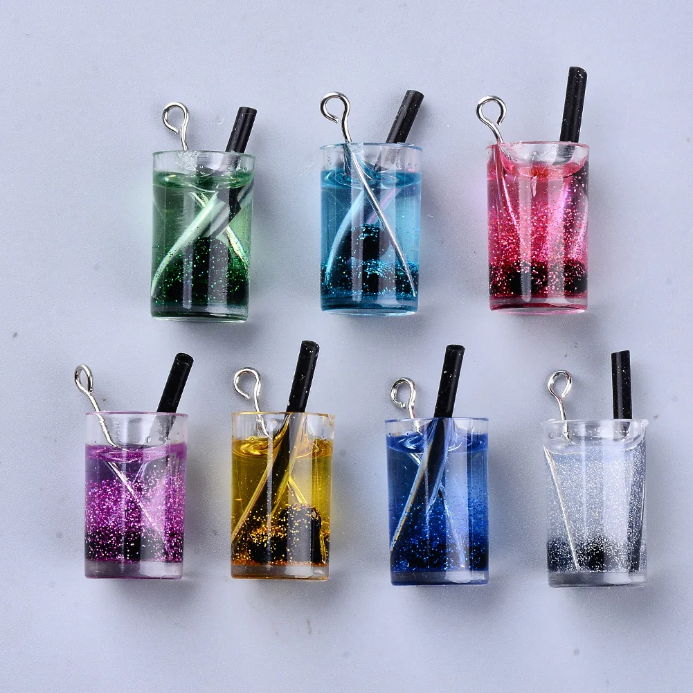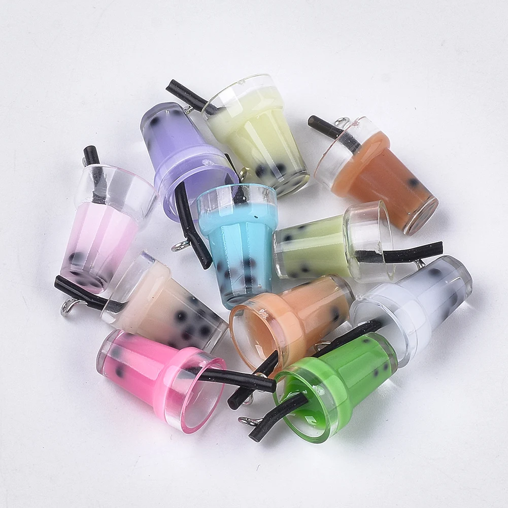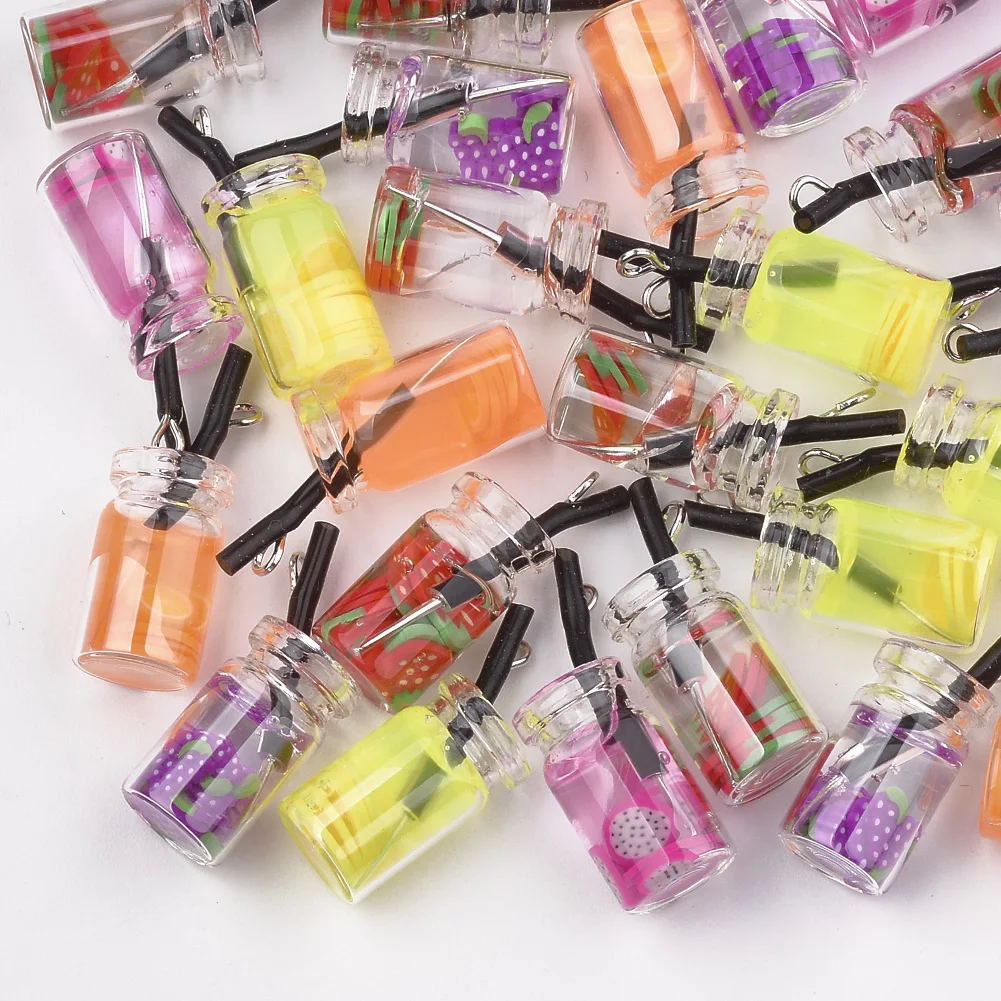 10 штук, искусственный бриллиант из смолы, имитация Bubble Teaстеклянная бутылка кулон фруктового сока пластиковая Подвески Серьги брелок "сделай сам" для изготовления ювелирных изделий, аксессуары
