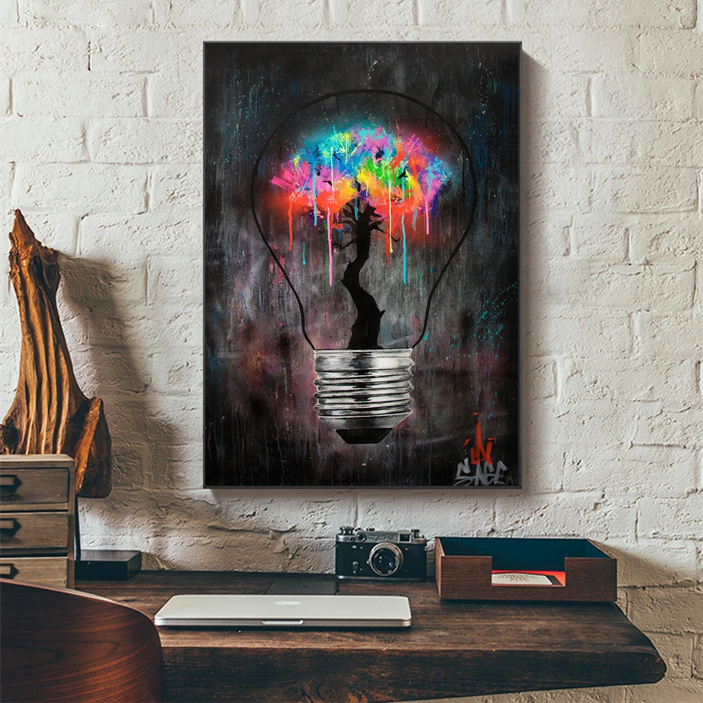 Граффити светильник почка красочное дерево уличное искусство холст печать Картина Настенная картина Современная гостиная украшение дома плакат