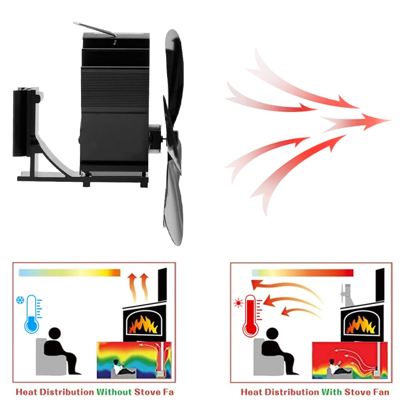 Настенная подвесная горелка с лезвием 45, черная вентилятор для печи, работающий от тепловой энергии, экологически чистая, тихая, для домашнего вентилятор для камина, распределение тепла