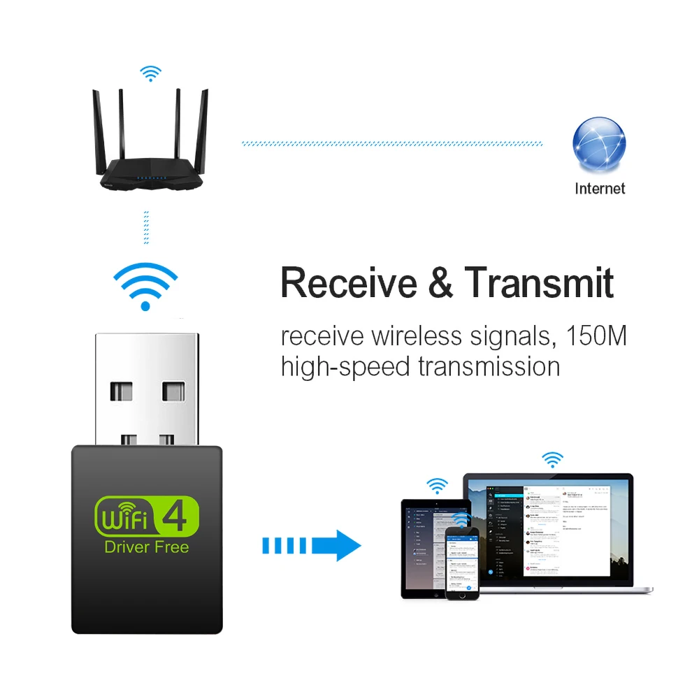 Мини USB WiFi адаптер Бесплатный драйвер 150 Мбитс Wi-Fi адаптер дл...