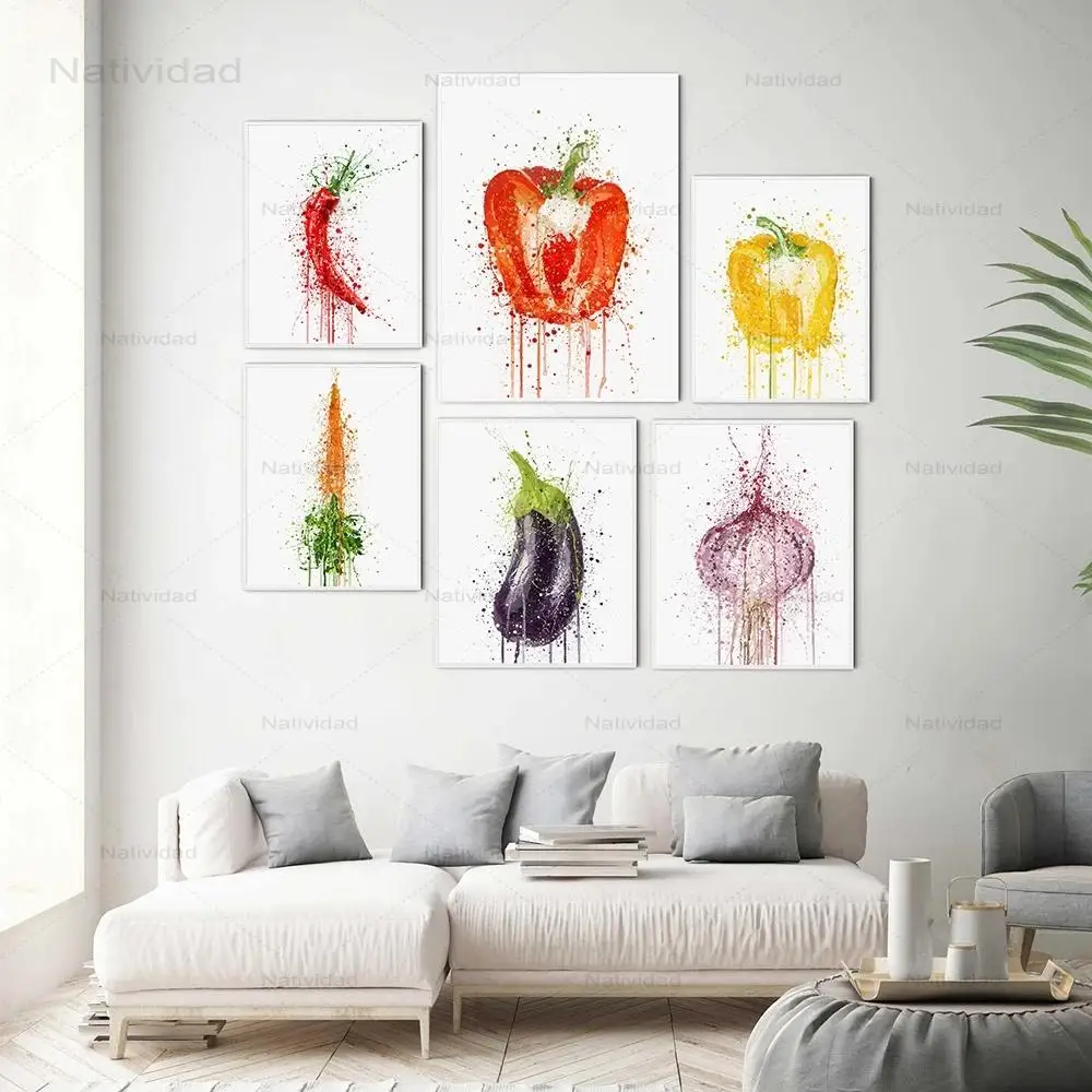 Плакаты и картины в акварельном стиле с изображением овощей, перца, лука, Скандинавская Настенная картина, домашний декор для кухни, Картина на холсте без рамки