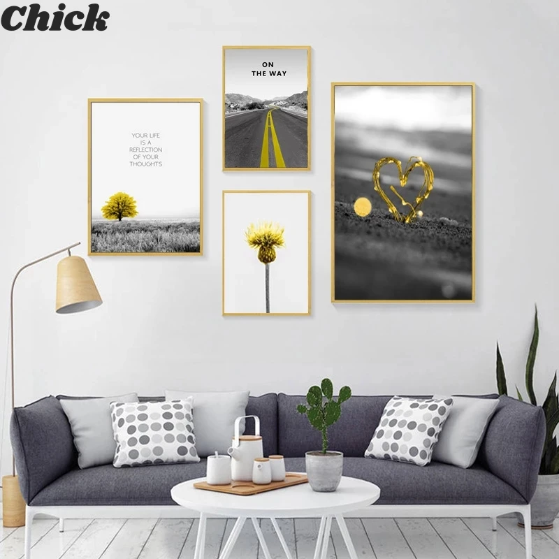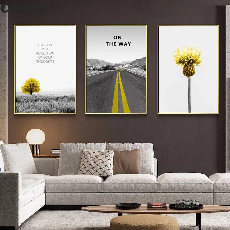 Черно-белый холст, настенное искусство, аксессуары для украшения дома, шоссе, цветы, пейзаж, живопись, украшение, картина