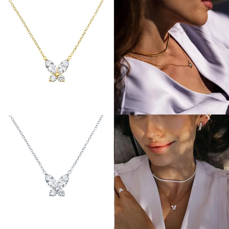 Автоклав реальные 925 Серебряное ожерелье для женщин Ins Мини Алмазный универсальный бабочка ювелирные изделия, цепочка с подвеской 18K Bijoux (украшения своими руками) воротник
