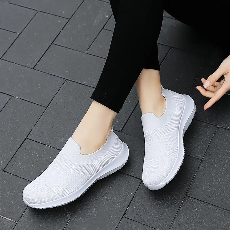 Летняя Легкая спортивная обувь для женщин; Сезон носки Спортивная обувь для бега; Женская спортивная обувь для женщин, белое трикотажное фитнес Sneackers D-1050