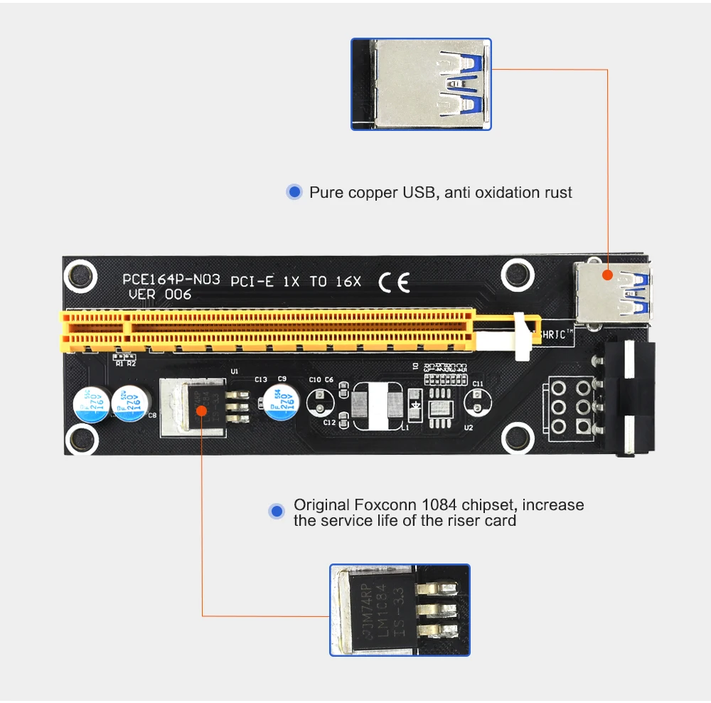 TISHRIC PCI-E Riser Card Ver 006 Графический удлинитель 60 см PCI Express 1X до 16X удлинитель USB3.0 кабель для GPU Miner Mining