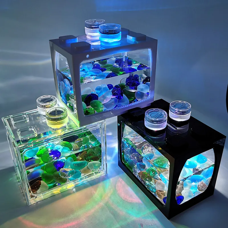 Настольный аквариум, аквариум с лампочками, аквариум маленького раз...